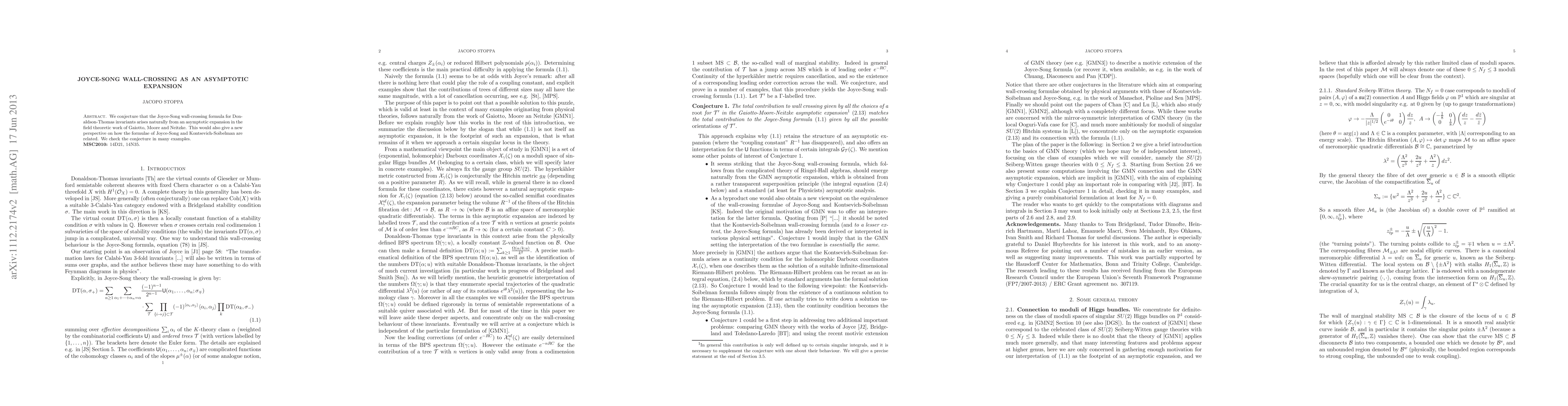 The paper proposes that the Joyce-Song wall-crossing formula for Donaldson-Thomas invariants emerges from an asymptotic expansion in the field theory framework of Gaiotto, Moore, and Neitzke, offering a new perspective on the relationship between Joyce-Song and Kontsevich-Soibelman formulae. The conjecture is verified through numerous examples.
