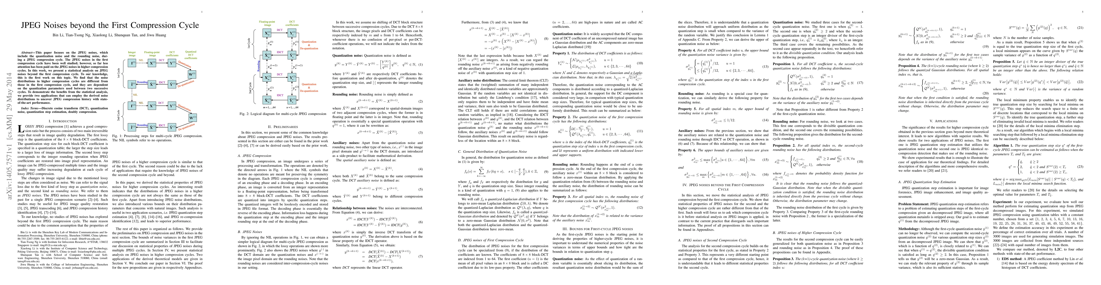 This paper focuses on the JPEG noises, which include the quantization noise and the rounding noise, during a JPEG compression cycle. The JPEG noises in the first compression cycle have been well studied; however, so far less attention has been paid on the JPEG noises in higher compression cycles. In this work, we present a statistical analysis on JPEG noises beyond the first compression cycle. To our knowledge, this is the first work on this topic. We find that the noise distributions in higher compression cycles are different from those in the first compression cycle, and they are dependent on the quantization parameters used between two successive cycles. To demonstrate the benefits from the statistical analysis, we provide two applications that can employ the derived noise distributions to uncover JPEG compression history with state-of-the-art performance.