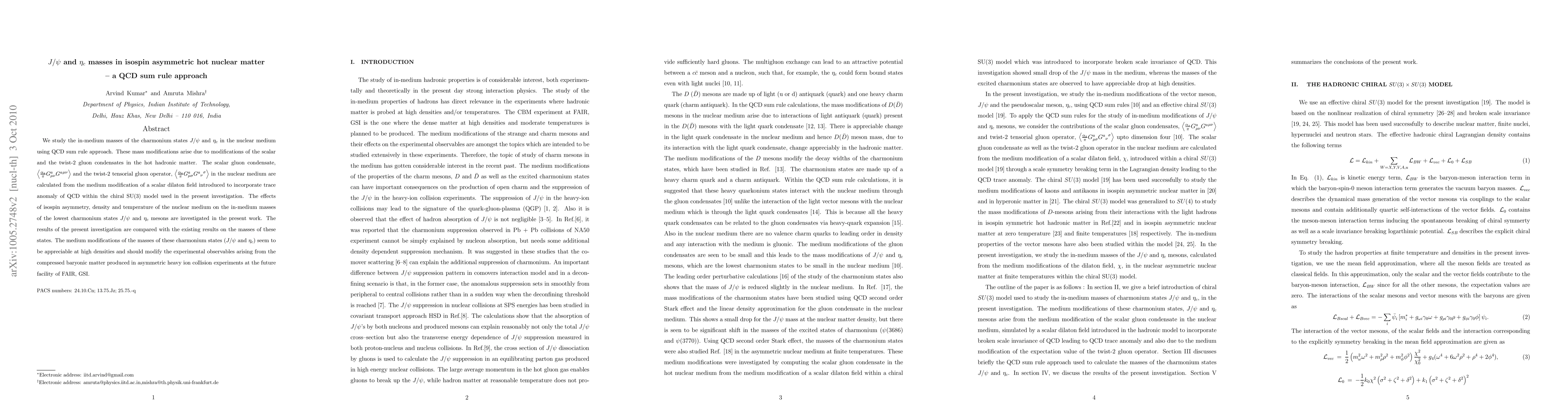 We study the in-medium masses of the charmonium states $J/\psi$ and $\eta_{c}$ in the nuclear medium using QCD sum rule approach. These mass modifications arise due to modifications of the scalar and the twist-2 gluon condensates in the hot hadronic matter. The scalar gluon condensate, $<\frac{\alpha_{s}}{\pi} G^a_{\mu\nu} {G^a}^{\mu\nu}>$ and the twist-2 tensorial gluon operator, $<\frac{\alpha_{s}}{\pi} G^a_{\mu\sigma} {{G^a}_\nu}^{\sigma}>$ in the nuclear medium are calculated from the medium modification of a scalar dilaton field introduced to incorporate trace anomaly of QCD within the chiral SU(3) model used in the present investigation. The effects of isospin asymmetry, density and temperature of the nuclear medium on the in-medium masses of the lowest charmonium states $J/\psi$ and $\eta_{c}$ mesons are investigated in the present work. The results of the present investigation are compared with the existing results on the masses of these states. The medium modifications of the masses of these charmonium states ($J/\psi$ and $\eta_c$) seem to be appreciable at high densities and should modify the experimental observables arising from the compressed baryonic matter produced in asymmetric heavy ion collision experiments at the future facility of FAIR, GSI.