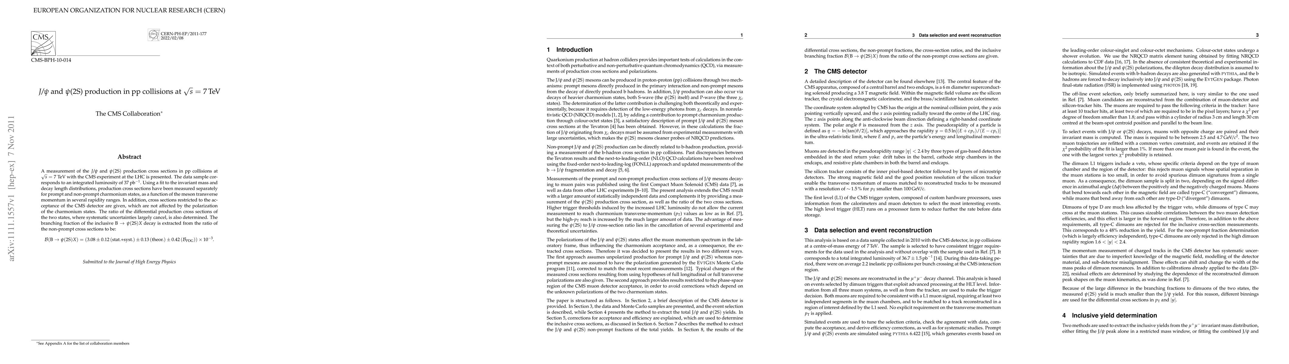 This paper reports on the measurement of J/psi and psi(2S) production cross sections in proton-proton collisions at 7 TeV using the CMS experiment at the LHC. The study provides differential cross sections for prompt and non-prompt charmonium states, and determines the branching fraction for B to psi(2S) X decay as 3.08 ± 0.12(stat.+syst.) ± 0.13(theor.) ± 0.42(BR[PDG]) × 10^-3.