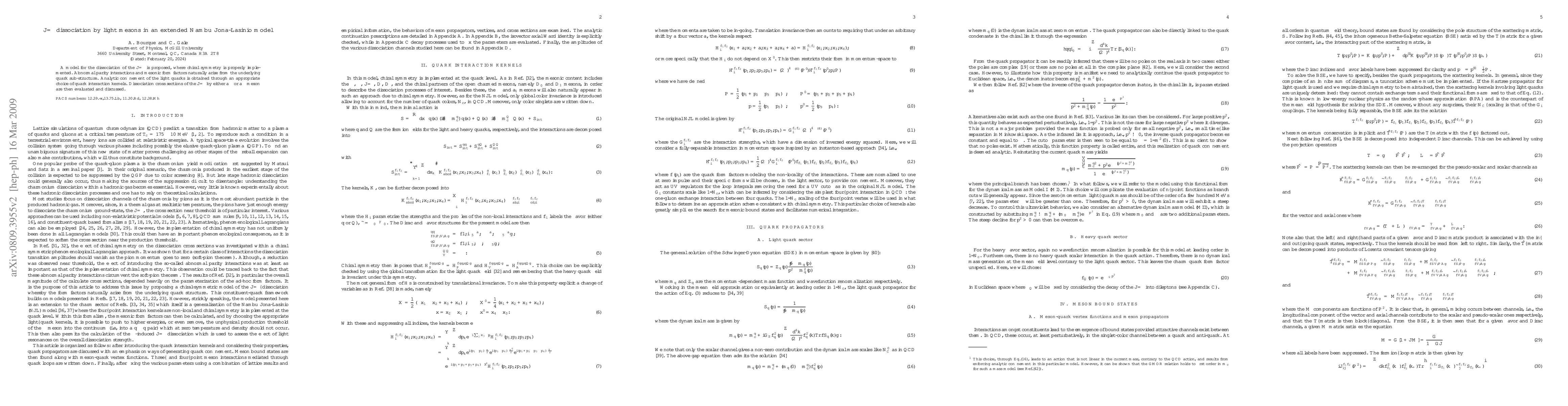 An alternative model for the dissociation of the J/psi is proposed. Chiral symmetry is properly implemented. Abnormal parity interactions and mesonic form factors naturally arise from the underlying quark sub-structure. Analytic confinement for the light quarks is generated by appropriately chosen the quark interaction kernels. Dissociation cross sections of the J/psi by either a pion or a rho meson are then evaluated and discussed.