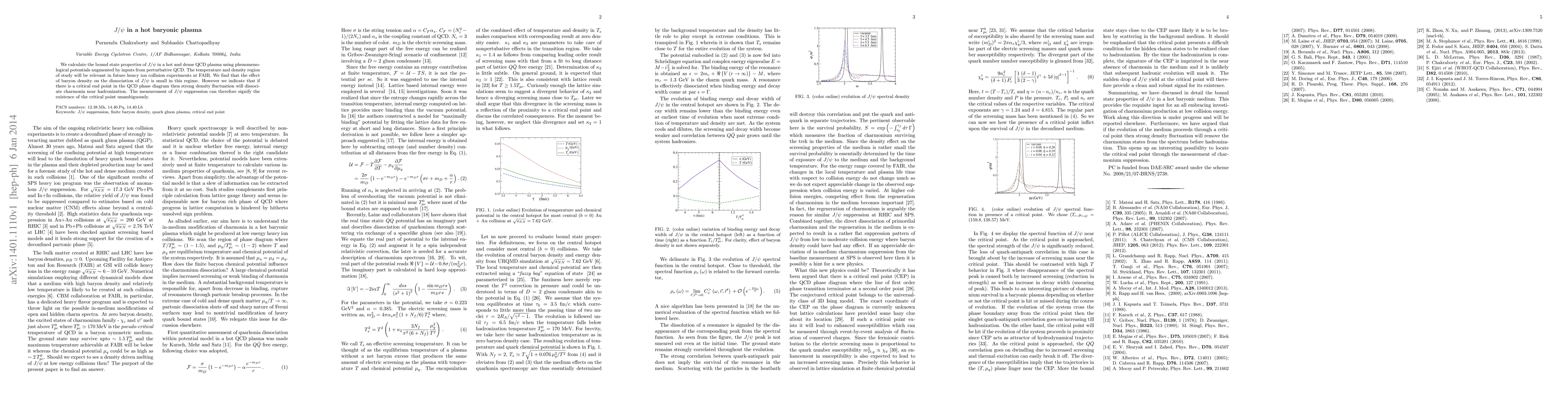 We calculate the bound state properties of $J/\psi$ in a hot and dense QCD plasma using phenomenological potentials augmented by inputs from perturbative QCD. The temperature and density region of study will be relevant in future heavy ion collision experiments at FAIR. We find that the effect of baryon density on the dissociation of $J/\psi$ is small in this regime. However we indicate that if there is a critical end point in the QCD phase diagram then strong density fluctuation will dissociate charmonia near hadronization. The measurement of $J/\psi$ suppression can therefore signify the existence of the critical point unambiguously.
