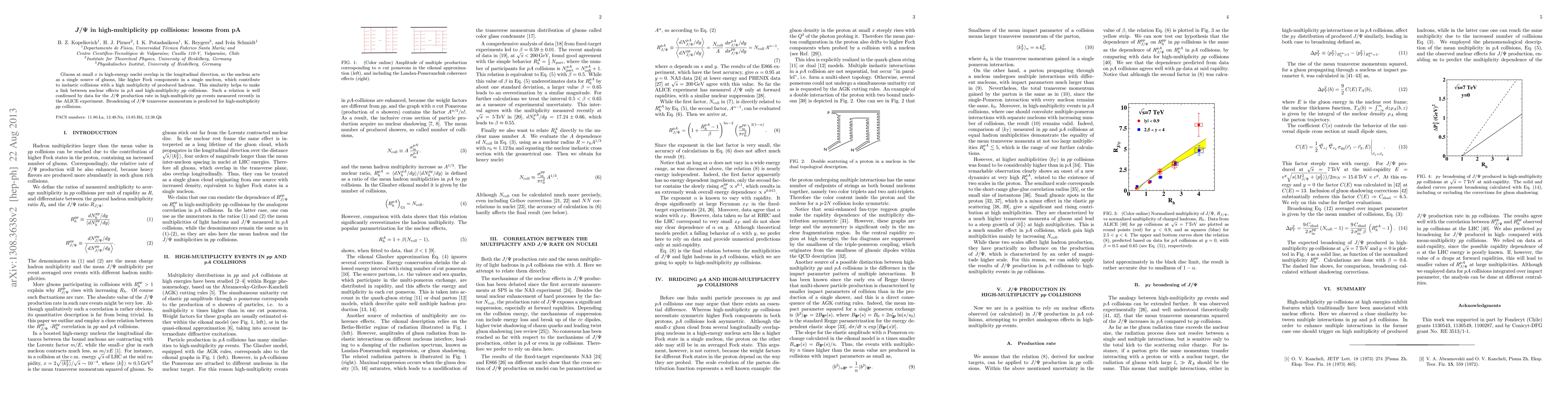 Gluons at small x in high-energy nuclei overlap in the longitudinal direction, so the nucleus acts as a single source of gluons, like higher Fock components in a single nucleon, which contribute to inelastic collisions with a high multiplicity of produced hadrons. This similarity helps to make a link between nuclear effects in pA and high-multiplicity pp collisions. Such a relation is well confirmed by data for the J/Psi production rate in high-multiplicity pp events measured recently in the ALICE experiment. Broadening of J/Psi transverse momentum is predicted for high-multiplicity pp collisions.