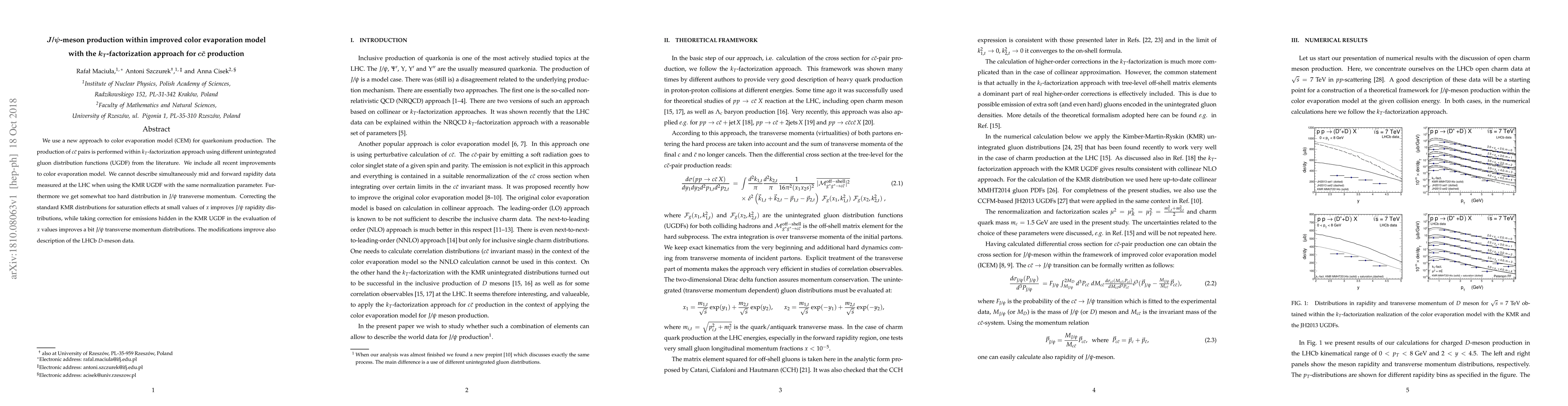 This paper introduces an improved color evaporation model for $J/\psi$-meson production using the $k_T$-factorization approach, finding that standard KMR unintegrated gluon distribution functions fail to describe both mid and forward rapidity data at the LHC. Adjustments for saturation effects and hidden emissions improve the model's accuracy for $J/\psi$ rapidity and transverse momentum distributions, as well as LHCb $D$-meson data.