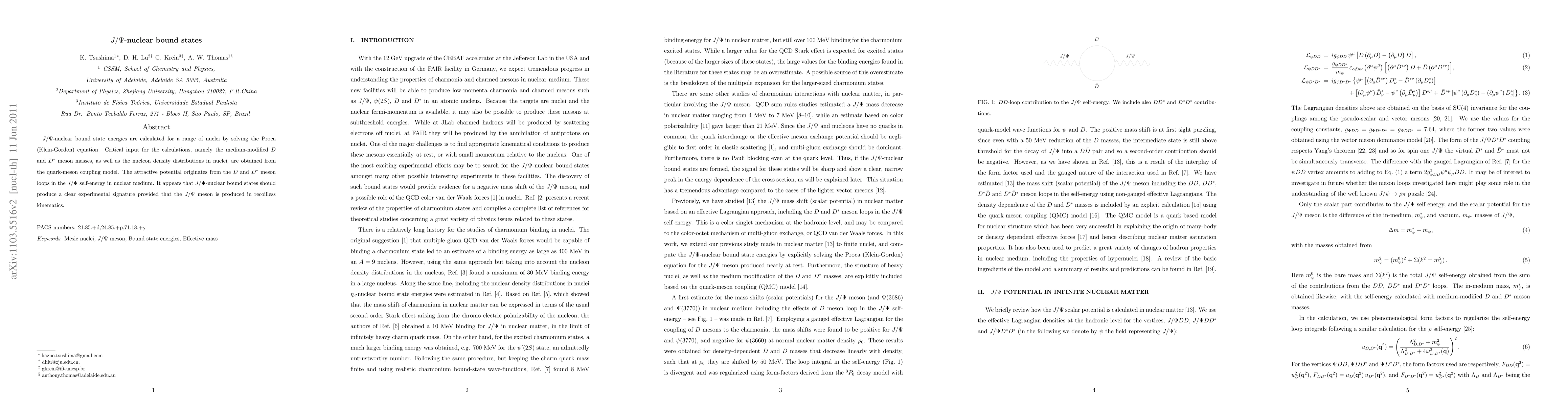This paper calculates $J/\Psi$-nuclear bound state energies using the Proca equation, with input parameters derived from the quark-meson coupling model. The study suggests that $J/\Psi$-nuclear bound states could be experimentally detected if $J/\Psi$ mesons are produced in recoilless kinematics.