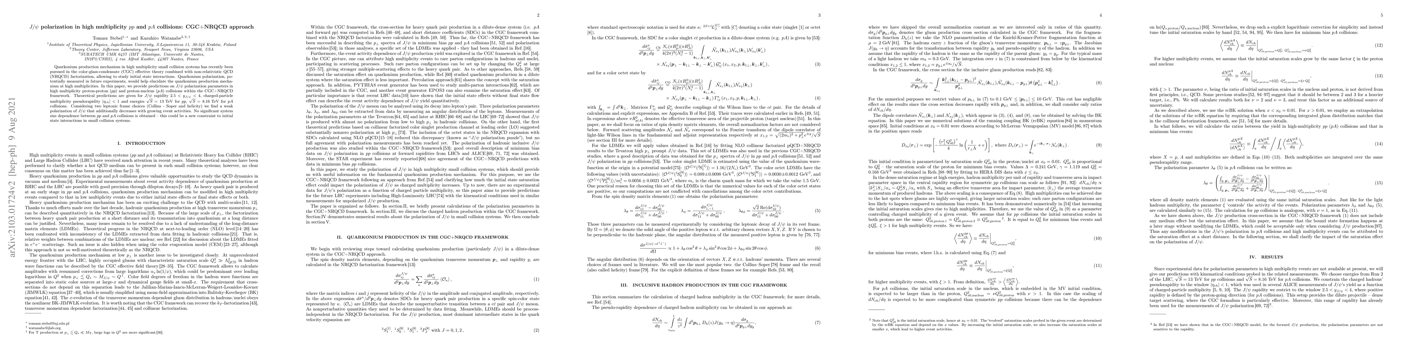 This paper uses the color-glass-condensate (CGC) effective theory combined with non-relativistic QCD (NRQCD) to predict $J/\psi$ polarization in high multiplicity $pp$ and $pA$ collisions. It finds a weak $J/\psi$ polarization that decreases with increasing event activity, with no significant difference between $pp$ and $pA$ collisions.