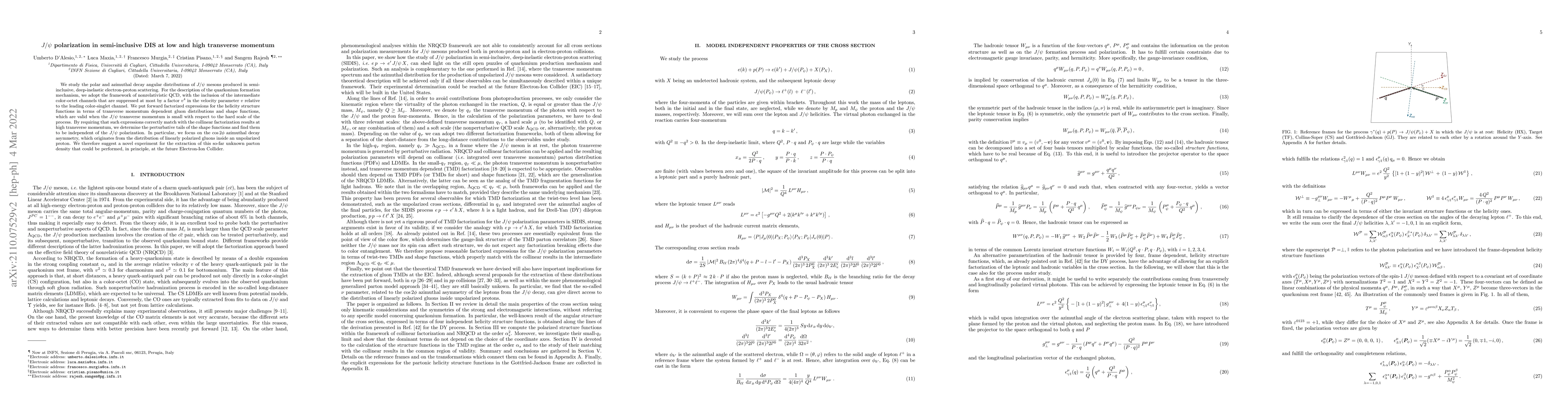 We study the polar and azimuthal decay angular distributions of $J/\psi$ mesons produced in semi-inclusive, deep-inelastic electron-proton scattering. For the description of the quarkonium formation mechanism, we adopt the framework of nonrelativistic QCD, with the inclusion of the intermediate color-octet channels that are suppressed at most by a factor $v^4$ in the velocity parameter $v$ relative to the leading color-singlet channel. We put forward factorized expressions for the helicity structure functions in terms of transverse momentum dependent gluon distributions and shape functions, which are valid when the $J/\psi$ transverse momentum is small with respect to the hard scale of the process. By requiring that such expressions correctly match with the collinear factorization results at high transverse momentum, we determine the perturbative tails of the shape functions and find them to be independent of the $J/\psi$ polarization. In particular, we focus on the $\cos 2\phi$ azimuthal decay asymmetry, which originates from the distribution of linearly polarized gluons inside an unpolarized proton. We therefore suggest a novel experiment for the extraction of this so-far unknown parton density that could be performed, in principle, at the future Electron-Ion Collider.
