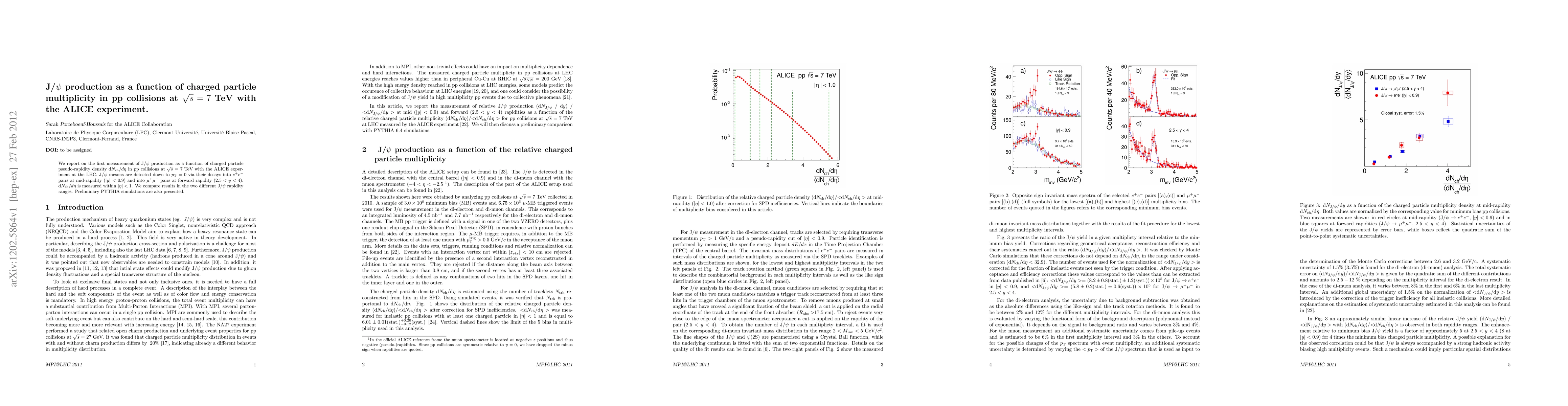 The ALICE experiment measures J/Psi production in pp collisions at sqrt{s}=7 TeV as a function of charged particle multiplicity, finding variations between mid-rapidity and forward rapidity ranges.