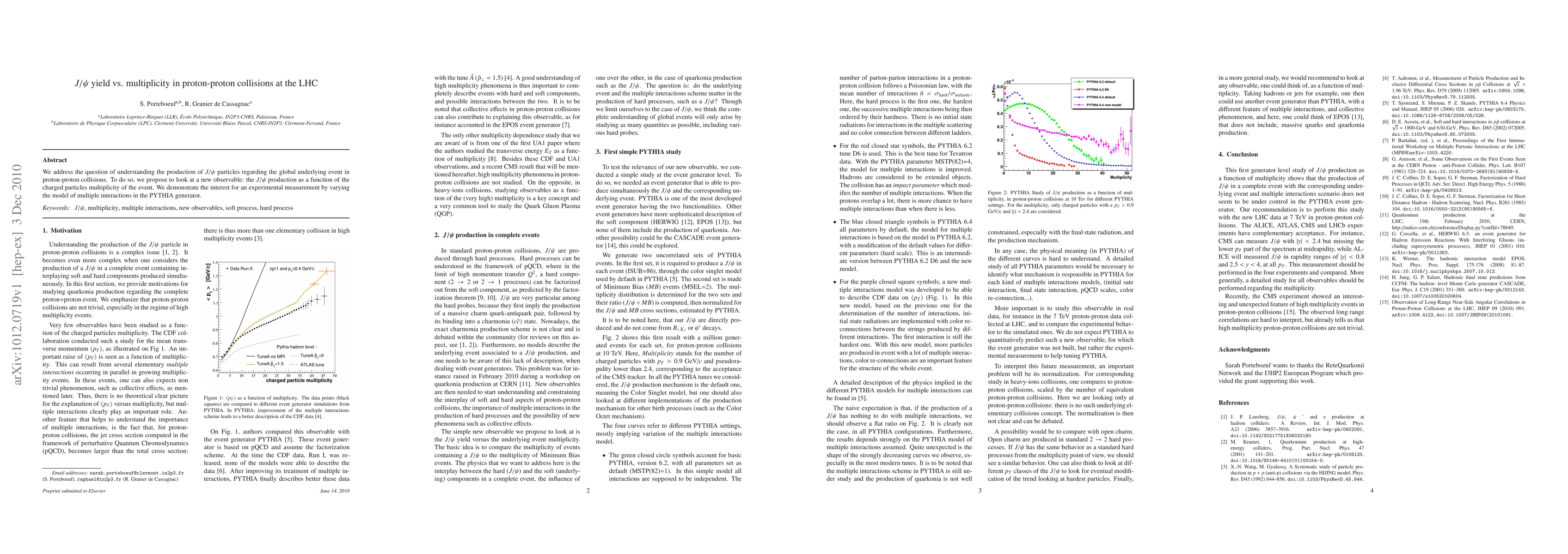 This paper investigates the relationship between $J/\psi$ particle production and the multiplicity of charged particles in proton-proton collisions at the LHC, proposing a new observable for this analysis. The study highlights the significance of this approach by demonstrating its impact on multiple interaction models in the PYTHIA generator.