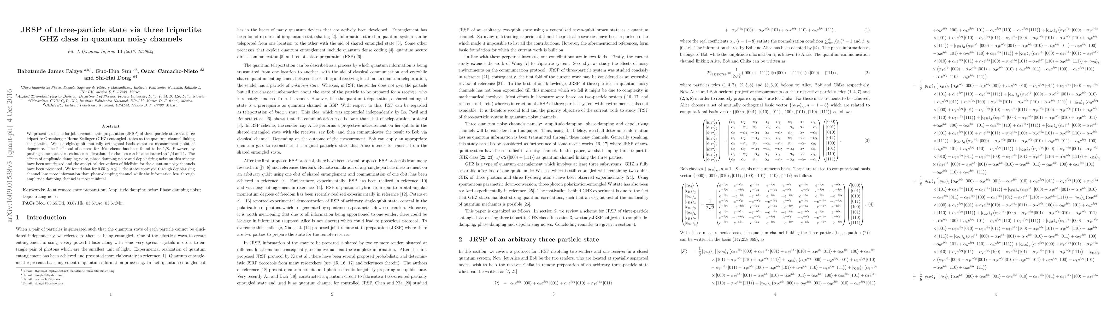 Researchers developed a method to prepare a three-particle state via tripartite GHZ entangled states in noisy quantum channels, with the chance of success improving from 1/8 to 1 under certain conditions.
