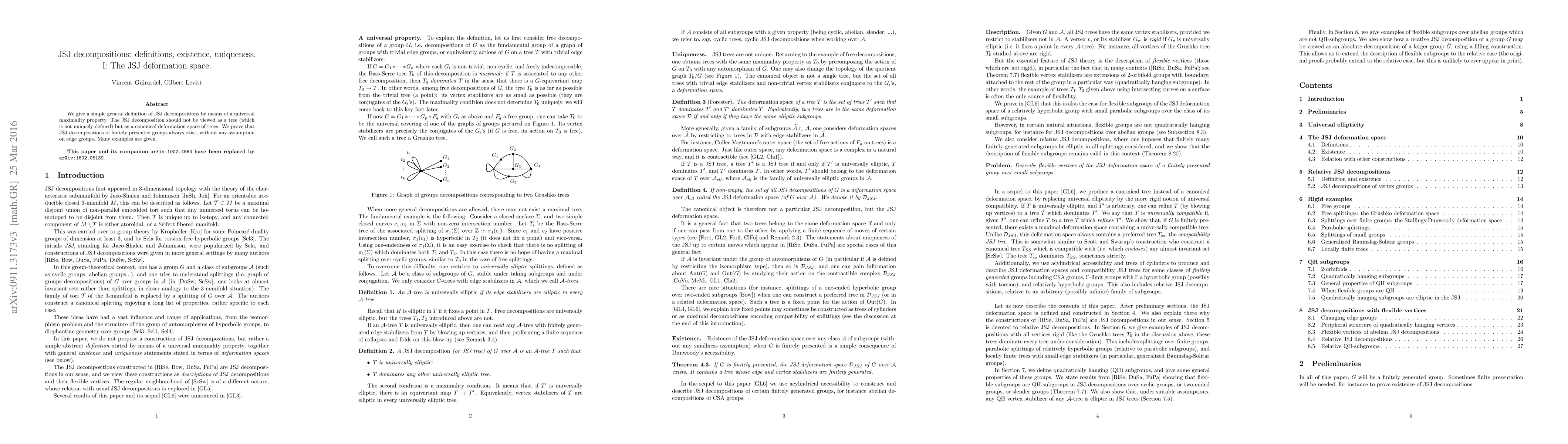 This paper provides a general definition of JSJ decompositions using a universal maximality property, viewing them as a canonical deformation space of trees rather than a uniquely defined tree. It establishes the existence of JSJ decompositions for finitely presented groups without assumptions on edge groups, supported by numerous examples.