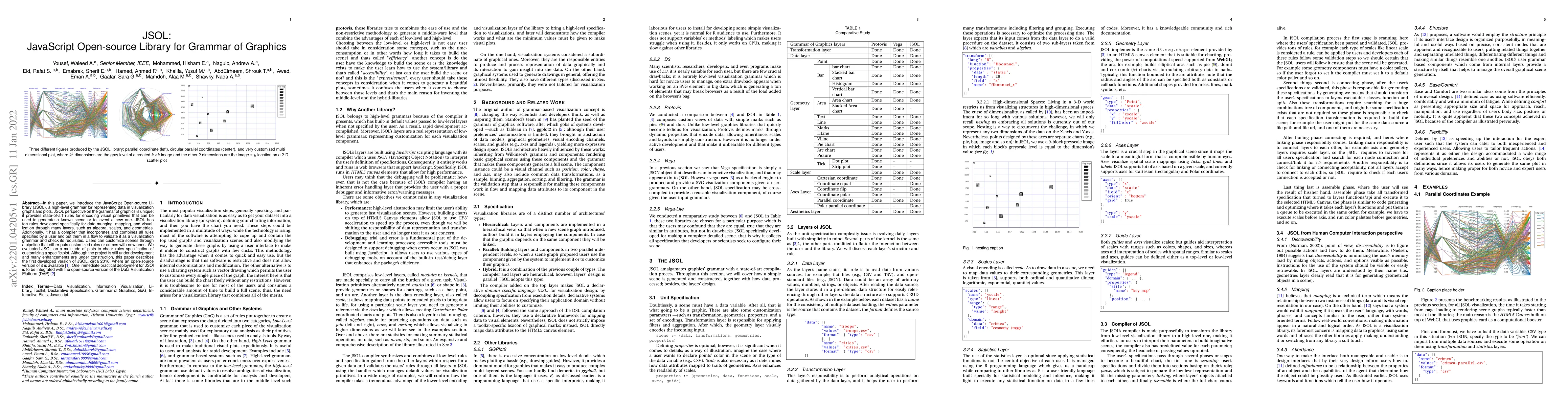 The paper introduces JSOL, a JavaScript open-source library for the Grammar of Graphics, which uses a high-level grammar for data visualization. It employs a compiler to validate user-specified rules and generate visualization grammars.
