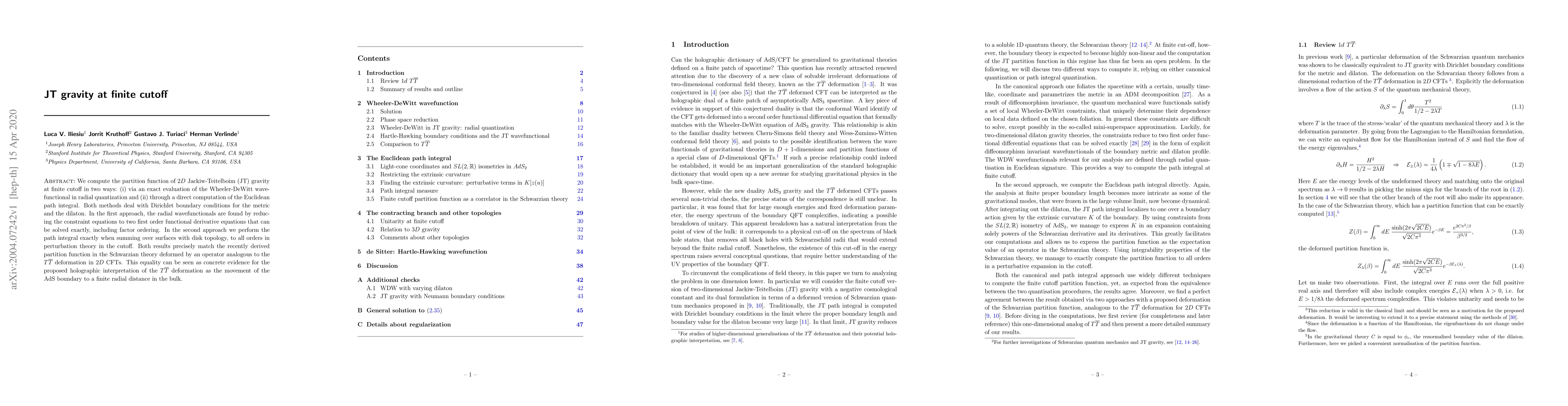 The study of 2D Jackiw-Teitelboim gravity at finite cutoff using two methods confirms the partition function matches a recently derived result in Schwarzian theory, supporting a holographic interpretation of $Tar{T}$ deformation.