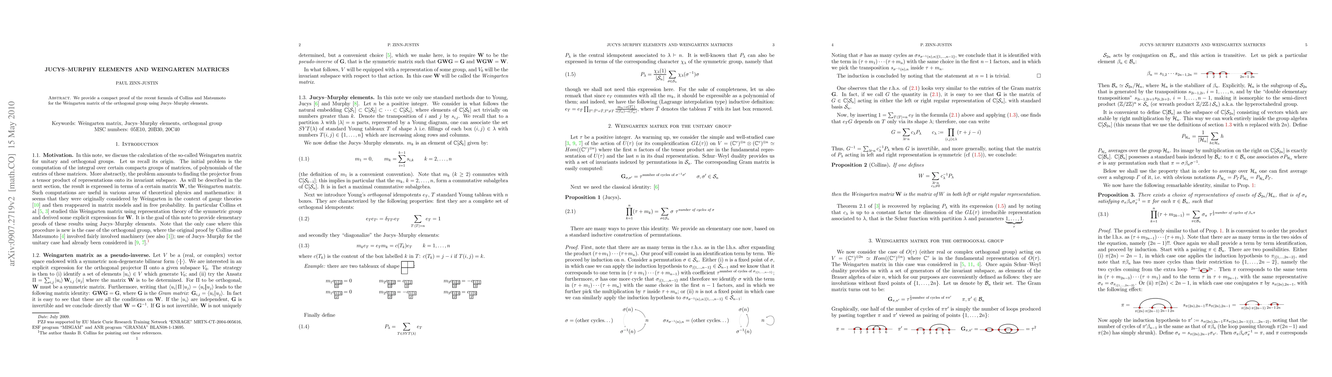 Summary: This paper offers a concise proof of the formula for the Weingarten matrix in the orthogonal group by leveraging Jucys-Murphy elements, enhancing understanding of the algebraic structures involved.