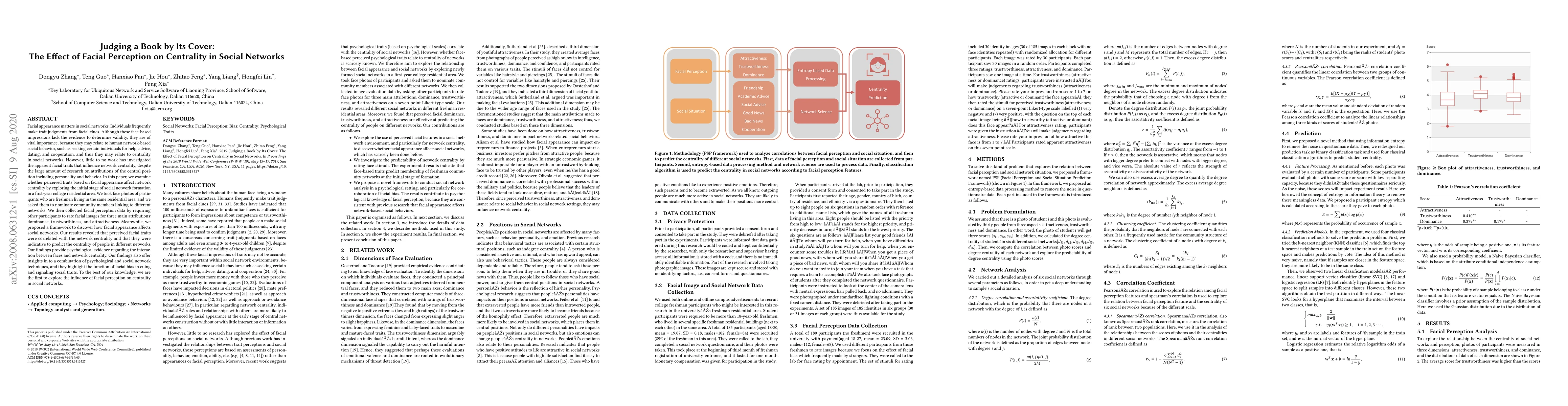 Research found that people's facial perception influences centrality in social networks, with perceived traits such as dominance, trustworthiness, and attractiveness correlating with network centrality.