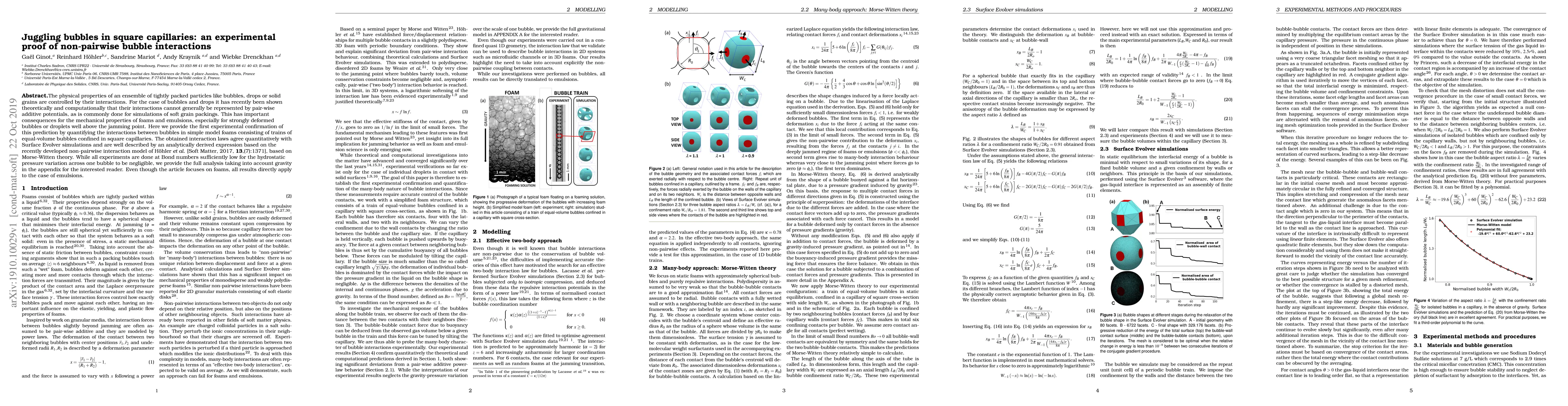 This paper experimentally confirms the non-pairwise interactions between bubbles in tightly packed ensembles, challenging the traditional pairwise additive model. The results, obtained from bubble trains in square capillaries, align with theoretical predictions and simulations, indicating significant implications for the mechanical properties of foams and emulsions.