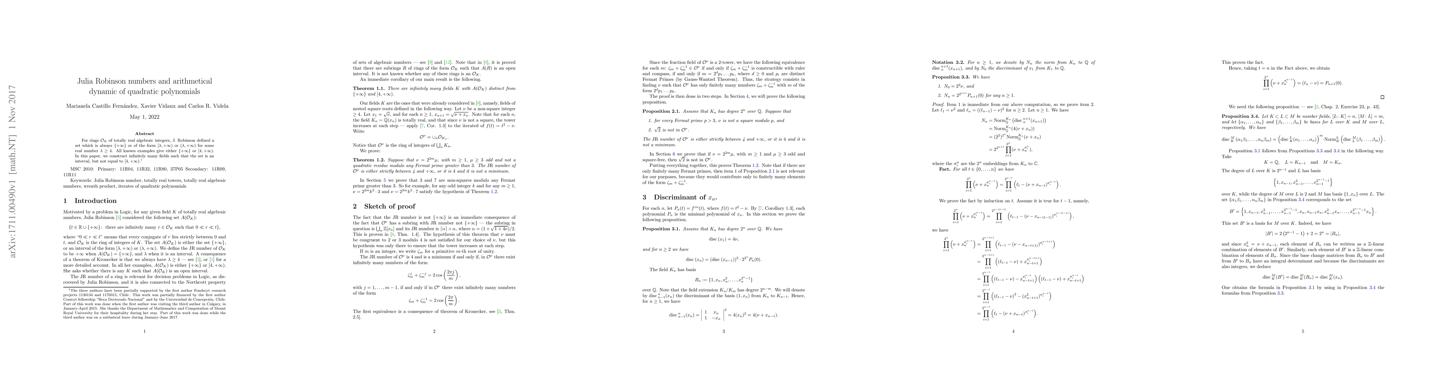 For rings $\mathcal{O}_K$ of totally real algebraic integers, J. Robinson defined a set which is always $\{+\infty\}$ or of the form $[\lambda,+\infty)$ or $(\lambda,+\infty)$ for some real number $\lambda\ge4$. All known examples give either $\{+\infty\}$ or $[4,+\infty)$. In this paper, we construct infinitely many fields such that the set is an interval, but not equal to $[4,+\infty)$.
