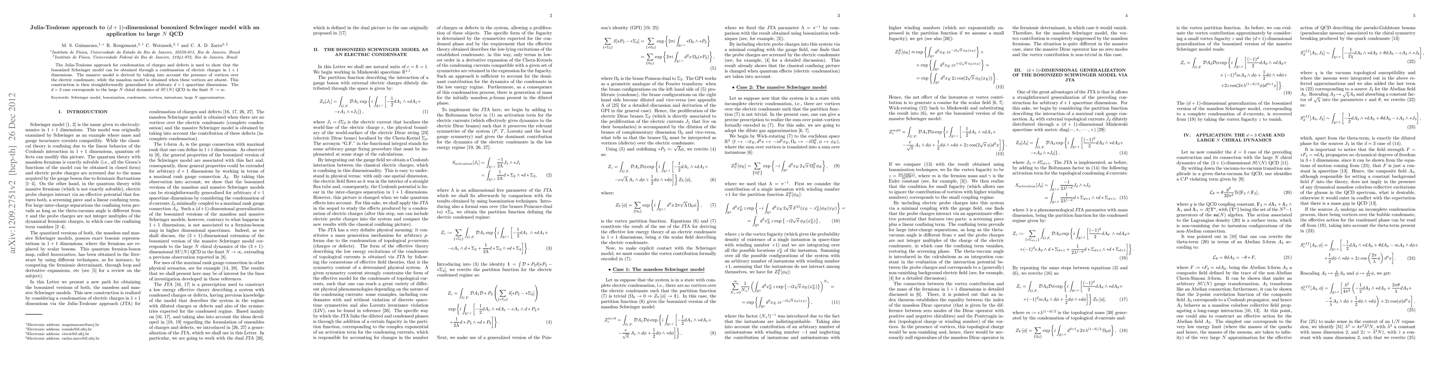 The Julia-Toulouse approach is used to derive a bosonized Schwinger model in 1+1 dimensions, which is then generalized to arbitrary d+1 spacetime dimensions, with implications for large N QCD and the limit of N going to infinity.