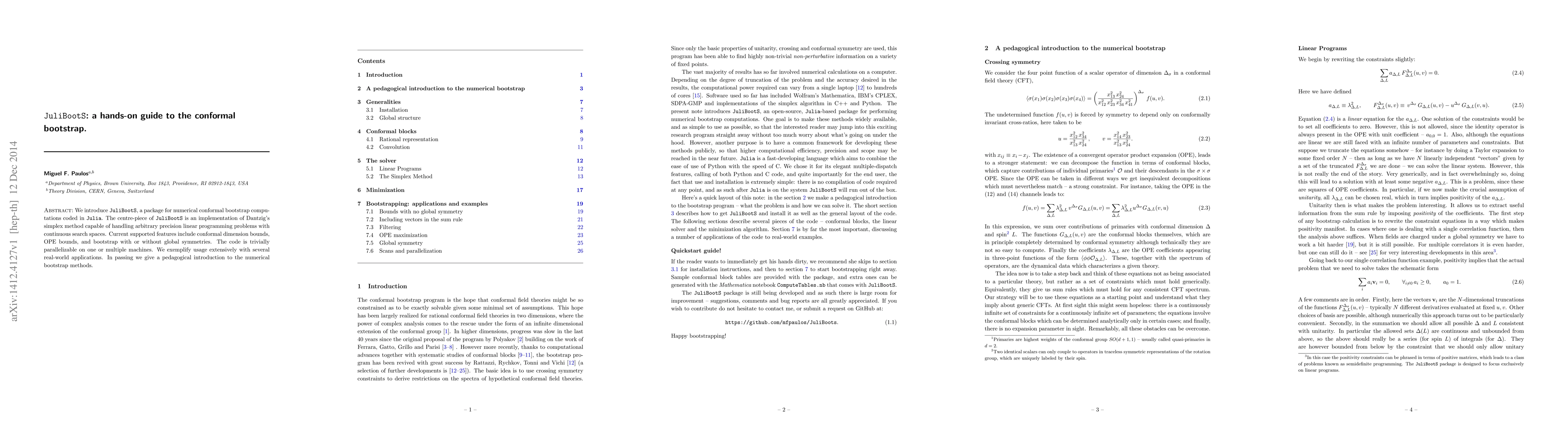 The JuliBootS package provides a user-friendly interface for numerical conformal bootstrap computations in Julia, allowing users to easily explore its features and applications.
