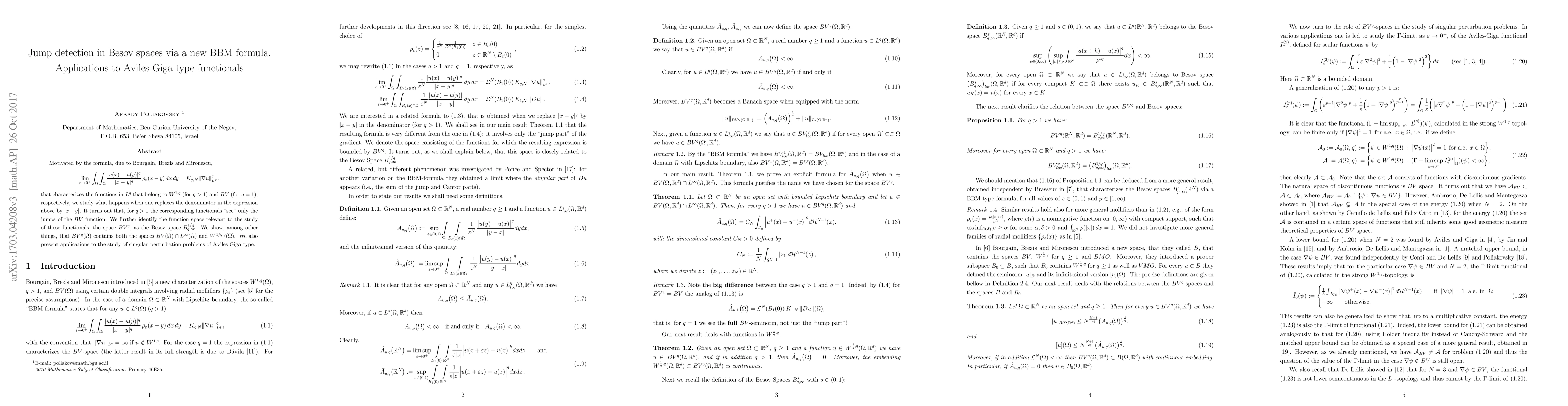 Motivated by the formula, due to Bourgain, Brezis and Mironescu, \begin{equation*} \lim_{\varepsilon\to 0^+} \int_\Omega\int_\Omega \frac{|u(x)-u(y)|^q}{|x-y|^q}\,\rho_\varepsilon(x-y)\,dx\,dy=K_{q,N}\|\nabla u\|_{L^{q}}^q\,, \end{equation*} that characterizes the functions in $L^q$ that belong to $W^{1,q}$ (for $q>1$) and $BV$ (for $q=1$), respectively, we study what happens when one replaces the denominator in the expression above by $|x-y|$. It turns out that, for $q>1$ the corresponding functionals "see" only the jumps of the $BV$ function. We further identify the function space relevant to the study of these functionals, the space $BV^q$, as the Besov space $B^{1/q}_{q,\infty}$. We show, among other things, that $BV^q(\Omega)$ contains both the spaces $BV(\Omega)\cap L^\infty(\Omega)$ and $W^{1/q,q}(\Omega)$. We also present applications to the study of singular perturbation problems of Aviles-Giga type.