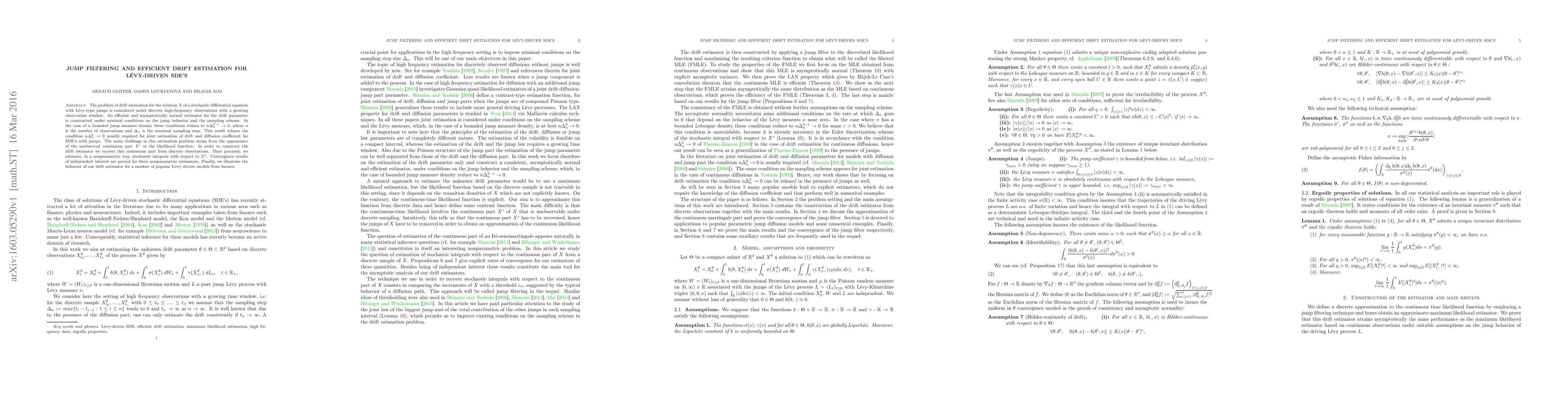 This paper develops an efficient and asymptotically normal estimator for the drift parameter in a stochastic differential equation with Lévy-type jumps, under high-frequency discrete observations. The proposed method relaxes typical conditions for joint drift and diffusion coefficient estimation, and it estimates the unobserved continuous part of the process to construct the drift estimator.