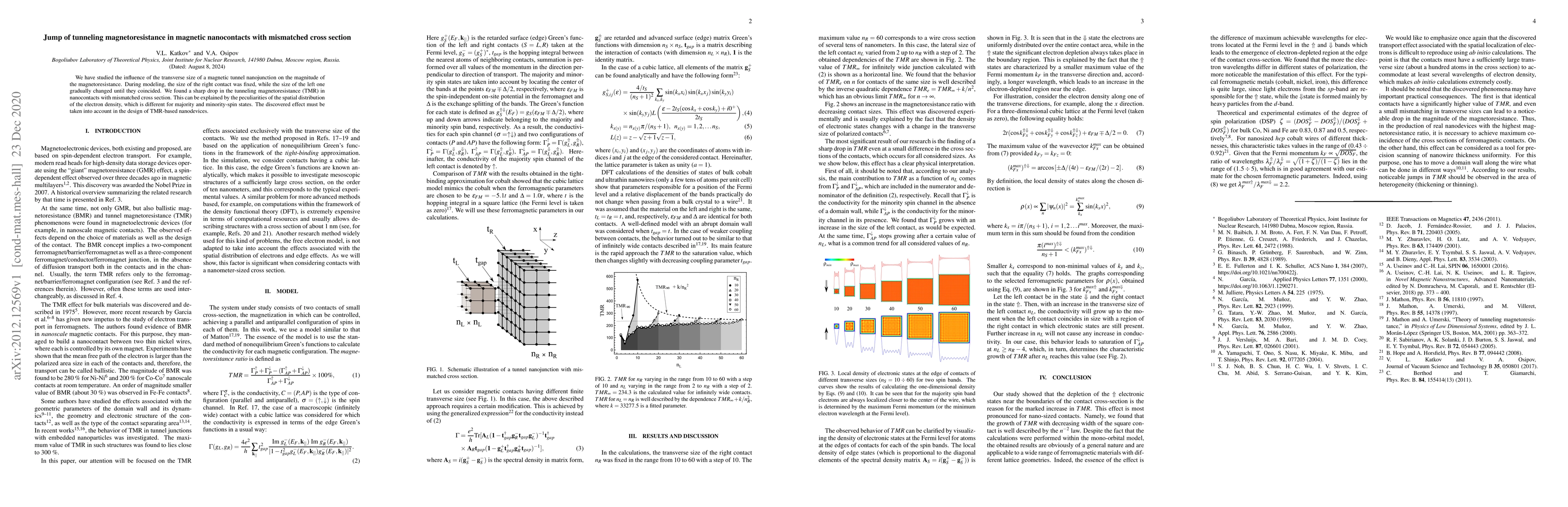 This study investigates how varying the transverse size of the magnetic contacts in a tunnel nanojunction affects tunneling magnetoresistance (TMR). A sharp drop in TMR was observed when the cross-sectional sizes of the contacts were mismatched, attributed to differences in electron density distribution for spin states, impacting the design of TMR-based nanodevices.