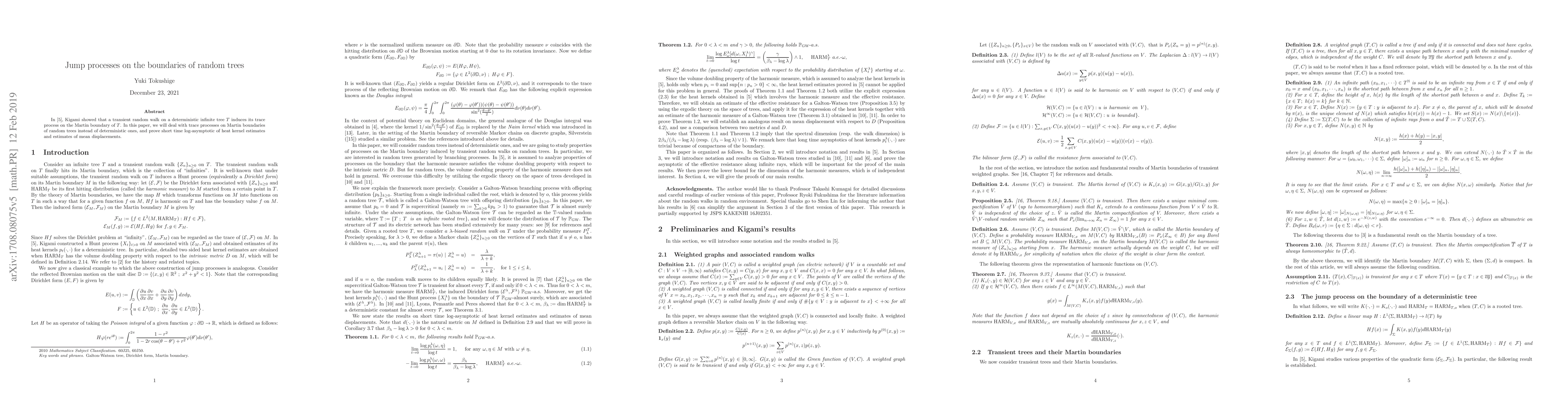 Kigami showed that a transient random walk on a deterministic infinite tree $T$ induces its trace process on the Martin boundary of $T$. In this paper, we will deal with trace processes on Martin boundaries of random trees instead of deterministic ones, and prove short time log-asymptotic of on-diagonal heat kernel estimates and estimates of mean displacements.
