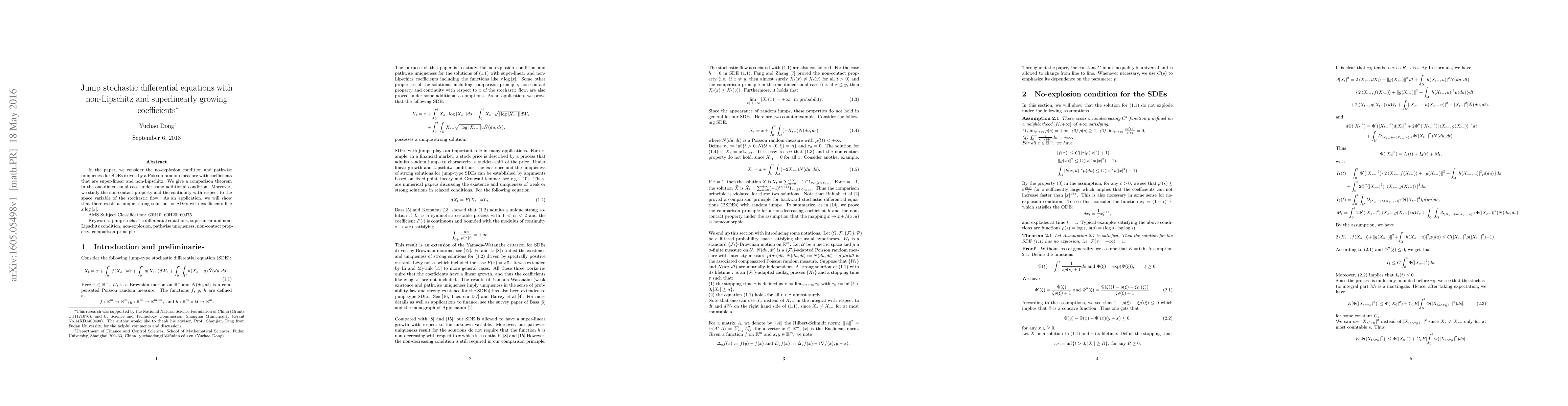 This paper investigates the no-explosion condition and pathwise uniqueness for jump stochastic differential equations driven by a Poisson random measure, focusing on superlinear and non-Lipschitz coefficients. It establishes a comparison theorem for one-dimensional cases and explores the non-contact property and continuity of the stochastic flow, demonstrating the existence of a unique strong solution for specific SDEs.