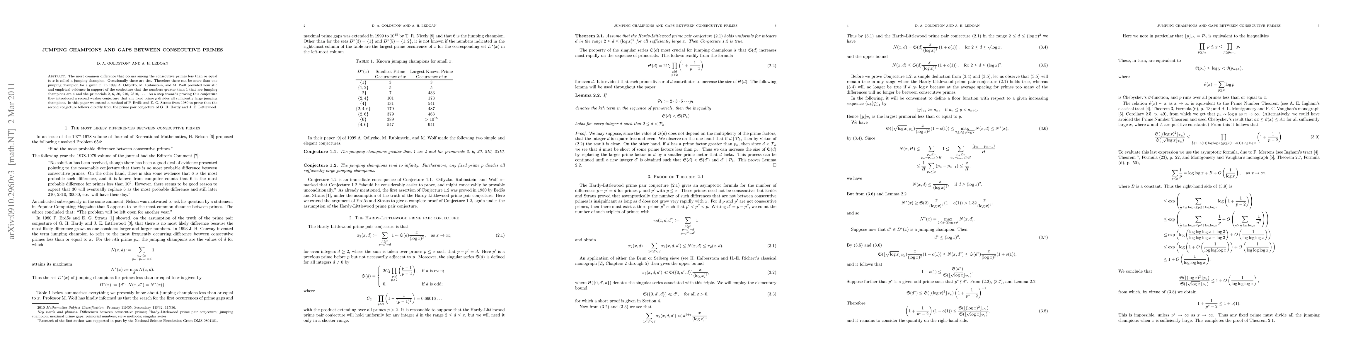 This paper extends a method to prove that the conjecture by Odlyzko, Rubinstein, and Wolf, which states that only 4 and primorials are jumping champions, is supported by the prime pair conjecture of Hardy and Littlewood. It demonstrates that any fixed prime divides all sufficiently large jumping champions.