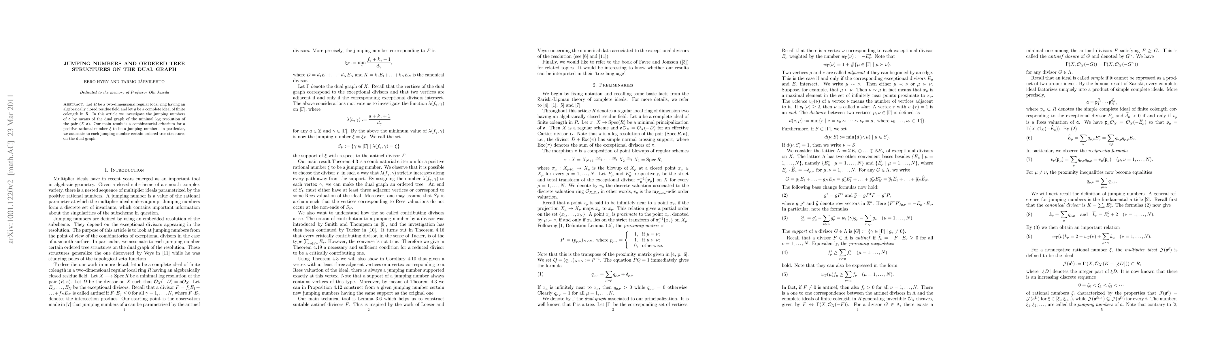 This paper investigates the jumping numbers of a complete ideal in a two-dimensional regular local ring using the dual graph of its minimal log resolution. The main result provides a combinatorial criterion for identifying jumping numbers and associates specific ordered tree structures to these numbers on the dual graph.