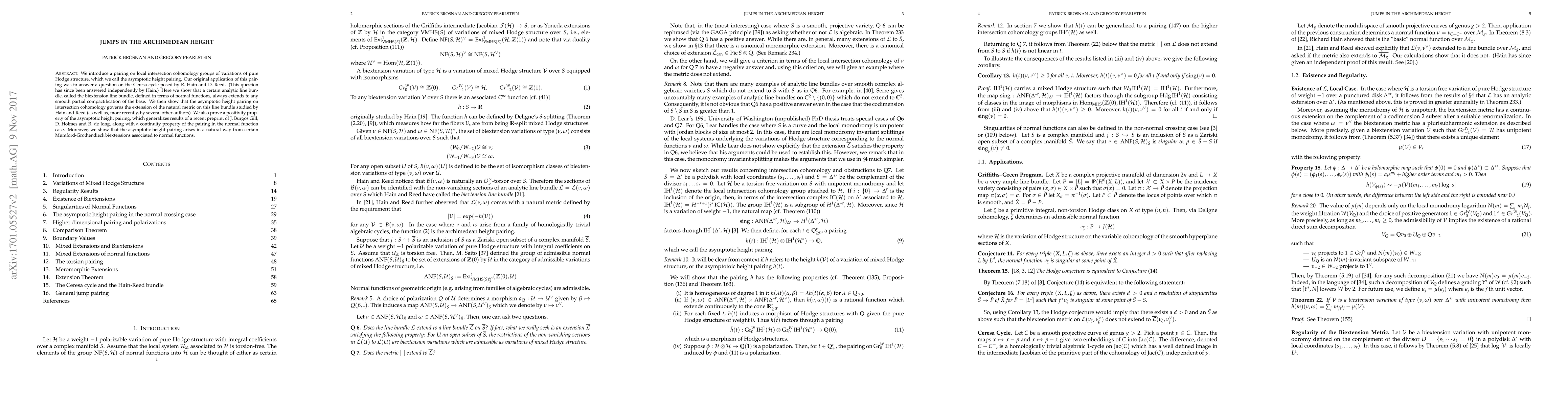 This paper introduces an asymptotic height pairing on local intersection cohomology groups of variations of pure Hodge structure, demonstrating its application in extending the biextension line bundle to smooth partial compactifications. It also proves positivity and continuity properties of the pairing and shows its connection to Mumford-Grothendieck biextensions.