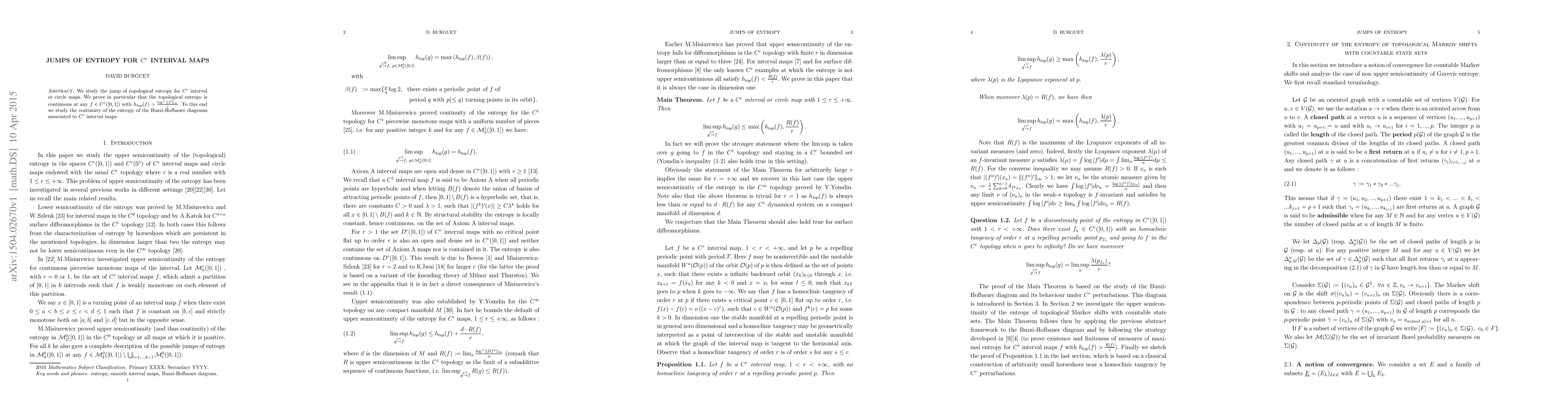 This paper investigates the topological entropy jumps in $C^r$ interval maps, proving that the entropy is continuous for maps where the entropy exceeds a certain threshold related to the derivative's norm. The study leverages the continuity of entropy in Buzzi-Hofbauer diagrams for these maps.