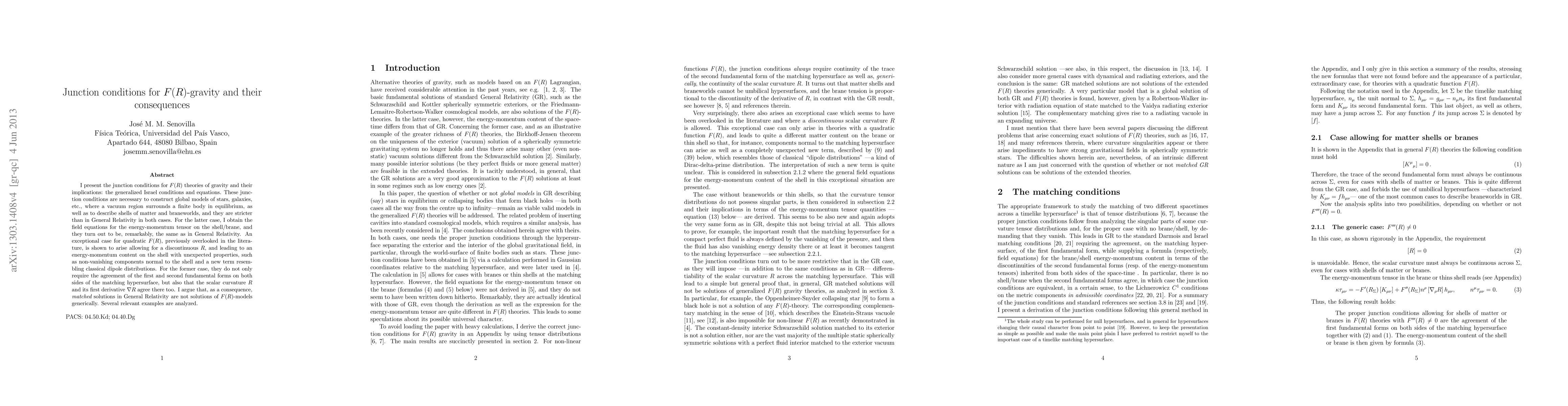 I present the junction conditions for F(R) theories of gravity and their implications: the generalized Israel conditions and equations. These junction conditions are necessary to construct global models of stars, galaxies, etc., where a vacuum region surrounds a finite body in equilibrium, as well as to describe shells of matter and braneworlds, and they are stricter than in General Relativity in both cases. For the latter case, I obtain the field equations for the energy-momentum tensor on the shell/brane, and they turn out to be, remarkably, the same as in General Relativity. An exceptional case for quadratic F(R), previously overlooked in the literature, is shown to arise allowing for a discontinuous R, and leading to an energy-momentum content on the shell with unexpected properties, such as non-vanishing components normal to the shell and a new term resembling classical dipole distributions. For the former case, they do not only require the agreement of the first and second fundamental forms on both sides of the matching hypersurface, but also that the scalar curvature R and its first derivative agree there too. I argue that, as a consequence, matched solutions in General Relativity are not solutions of F(R)-models generically. Several relevant examples are analyzed.