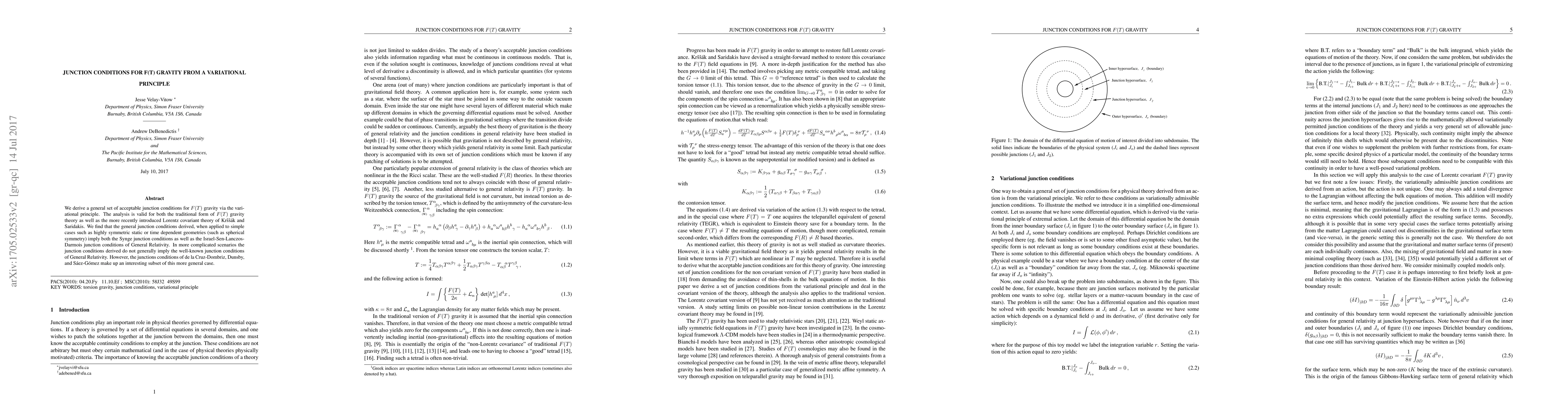 We derive a general set of acceptable junction conditions for $F(T)$ gravity via the variational principle. The analysis is valid for both the traditional form of $F(T)$ gravity theory as well as the more recently introduced Lorentz covariant theory of Kr\v{s}\v{s}\'ak and Saridakis. We find that the general junction conditions derived, when applied to simple cases such as highly symmetric static or time dependent geometries (such as spherical symmetry) imply both the Synge junction conditions as well as the Israel-Sen-Lanczos-Darmois junction conditions of General Relativity. In more complicated scenarios the junction conditions derived do not generally imply the well-known junction conditions of General Relativity. However, the junctions conditions of de la Cruz-Dombriz, Dunsby, and S\'aez-G\'omez make up an interesting subset of this more general case.