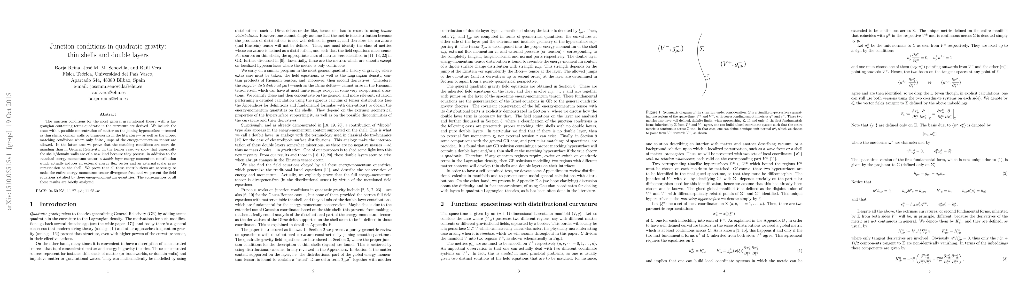 The junction conditions for the most general gravitational theory with a Lagrangian containing terms quadratic in the curvature are derived. We include the cases with a possible concentration of matter on the joining hypersurface -termed as thin shells, domain walls or braneworlds in the literature- as well as the proper matching conditions where only finite jumps of the energy-momentum tensor are allowed. In the latter case we prove that the matching conditions are more demanding than in General Relativity. In the former case, we show that generically the shells/domain walls are of a new kind because they possess, in addition to the standard energy-momentum tensor, a double layer energy-momentum contribution which actually induces an external energy flux vector and an external scalar pressure/tension on the shell. We prove that all these contributions are necessary to make the entire energy-momentum tensor divergence-free, and we present the field equations satisfied by these energy-momentum quantities. The consequences of all these results are briefly analyzed.