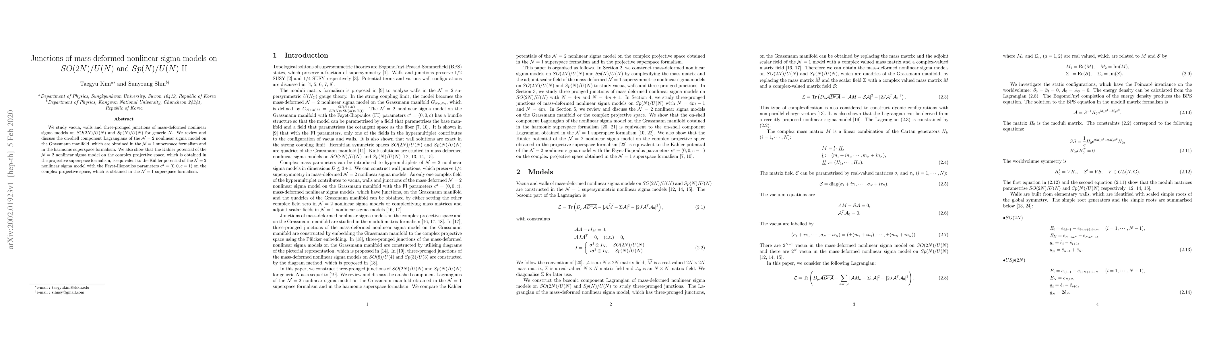 This paper investigates vacua, walls, and junctions of mass-deformed nonlinear sigma models on $SO(2N)/U(N)$ and $Sp(N)/U(N)$ for generic $N$, comparing Lagrangians from different superspace formalisms and demonstrating equivalence between Kähler potentials in various formulations.