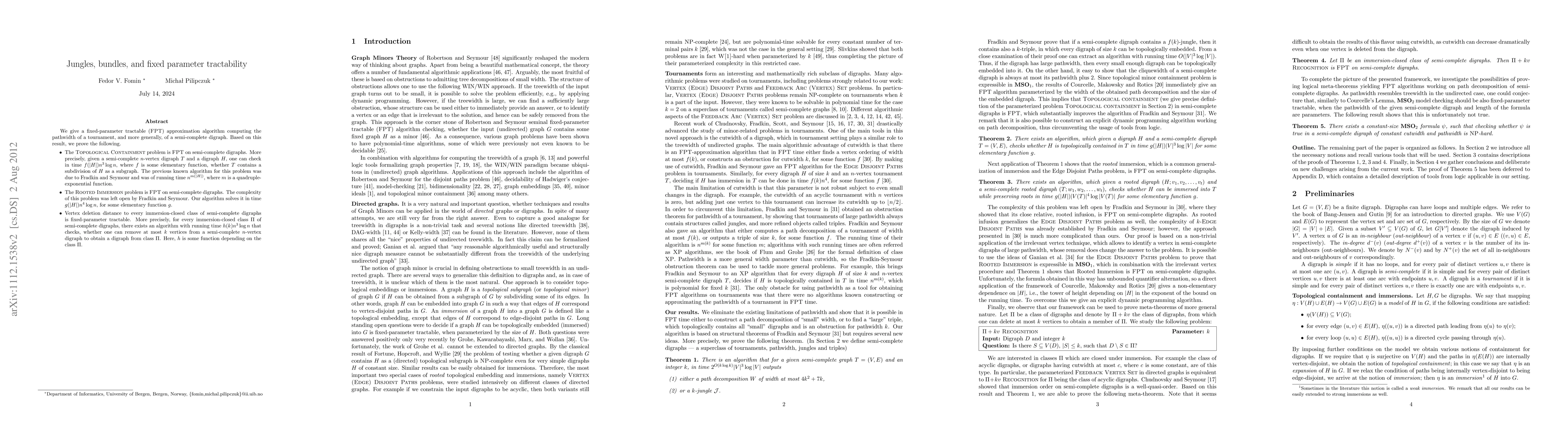 Researchers developed an algorithm to solve path-width problems on semi-complete digraphs in fixed-parameter tractable time, with implications for solving topological containment and rooted immersion problems.