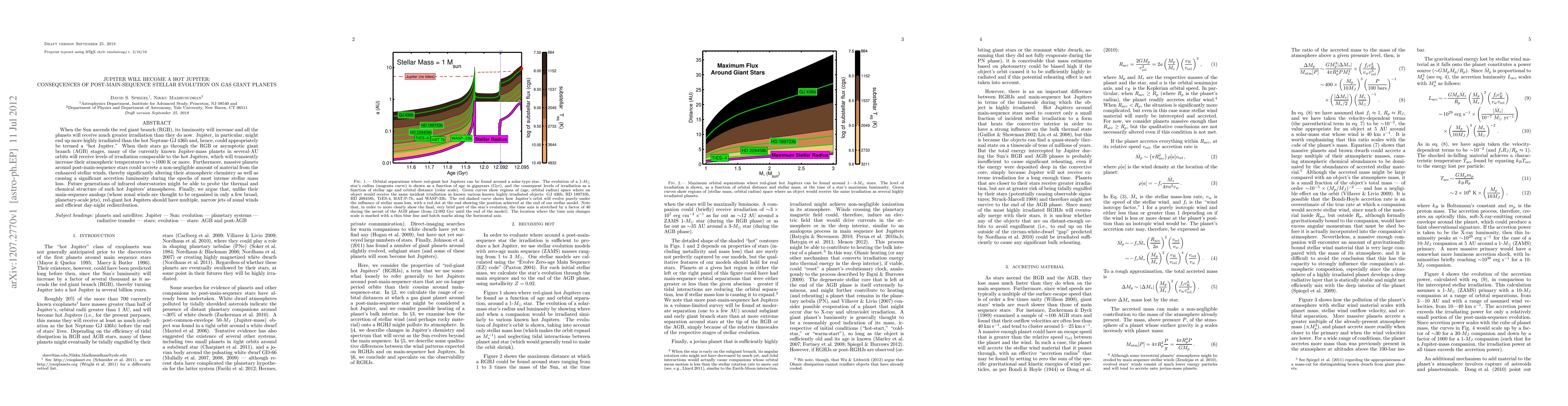 This paper explores the future irradiation and atmospheric changes of gas giant planets like Jupiter as their stars evolve into red giants, potentially transforming them into "hot Jupiters" with temperatures exceeding 1000 K. It also discusses the impact of stellar winds on their atmospheric chemistry and the possibility of future infrared observatories studying these changes.
