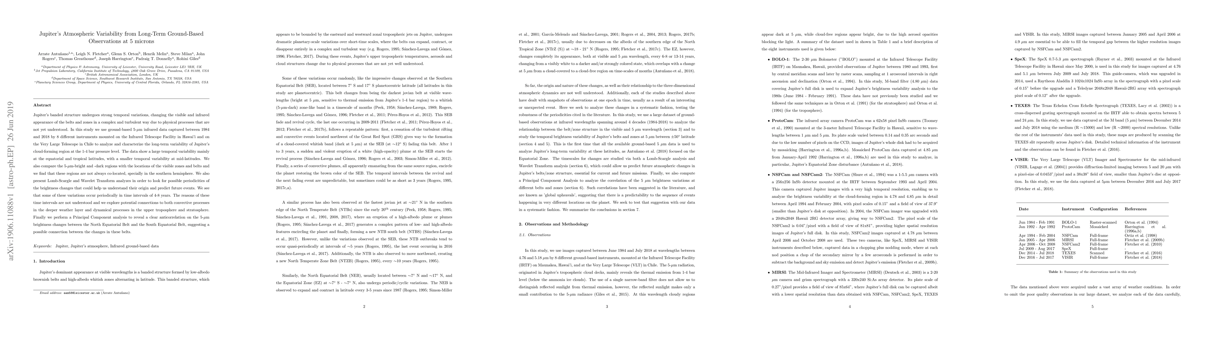 Researchers used ground-based infrared data to study Jupiter's atmospheric variability over 34 years, finding large temporal changes at the equator and smaller ones at mid-latitudes. The study suggests a possible connection between changes in the North and South Equatorial Belts.