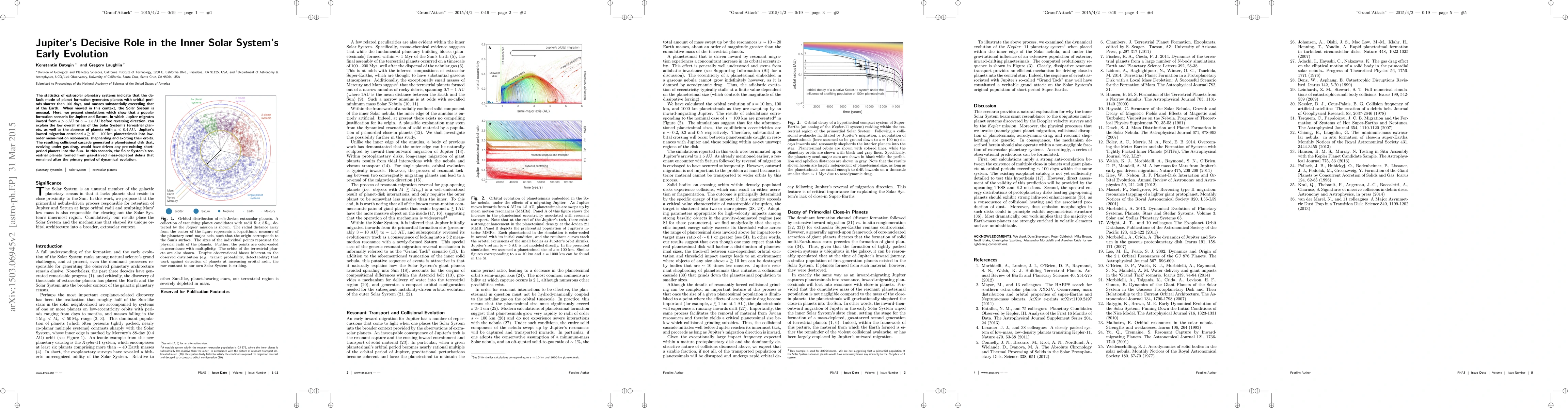 This paper argues that Jupiter's inward migration played a crucial role in shaping the early Solar System, explaining the low mass of terrestrial planets and the absence of close-in planets by clearing out pre-existing short-period planets through gravitational interactions.