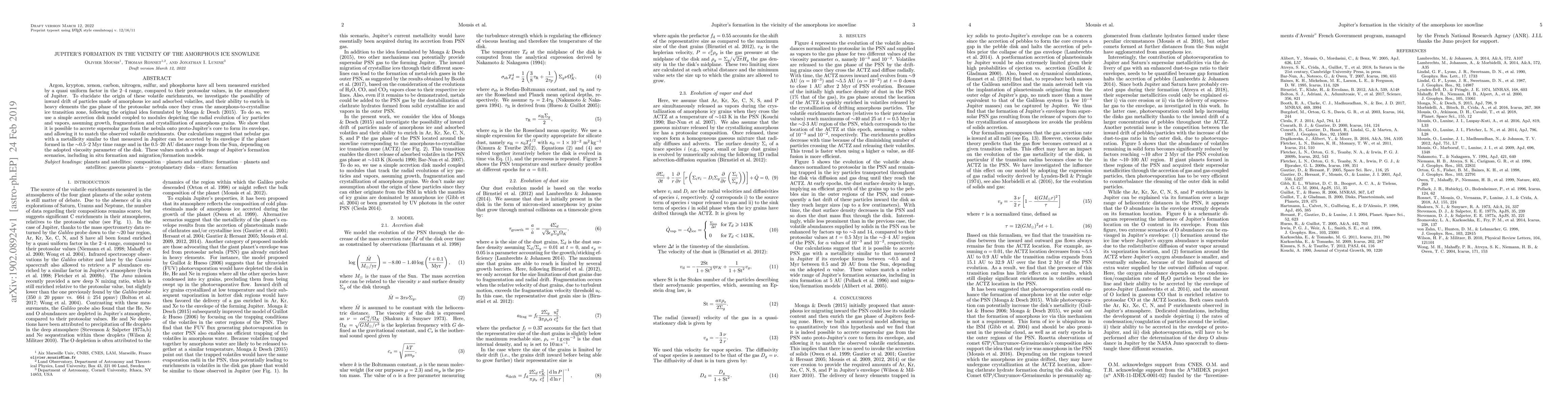 This research proposes that Jupiter's volatile enrichments, such as argon, krypton, and nitrogen, originated from amorphous ice particles drifting inward and releasing heavy elements into the gas phase upon crossing the amorphous-to-crystalline ice transition zone. Using an accretion disk model, they demonstrate that Jupiter could accrete supersolar gas from the nebula within a specific time and distance range from the Sun, supporting various Jupiter formation scenarios.