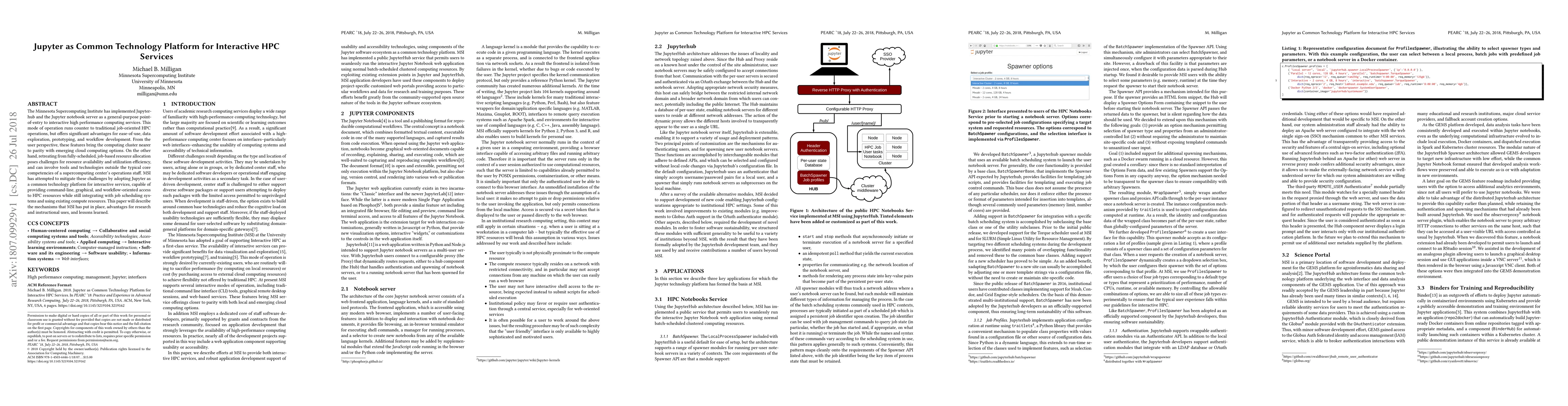 The Minnesota Supercomputing Institute uses Jupyterhub for interactive HPC services, offering ease-of-use and data exploration but facing challenges in resource management and efficiency. The implementation provides diverse access to HPC resources while integrating with scheduling systems.