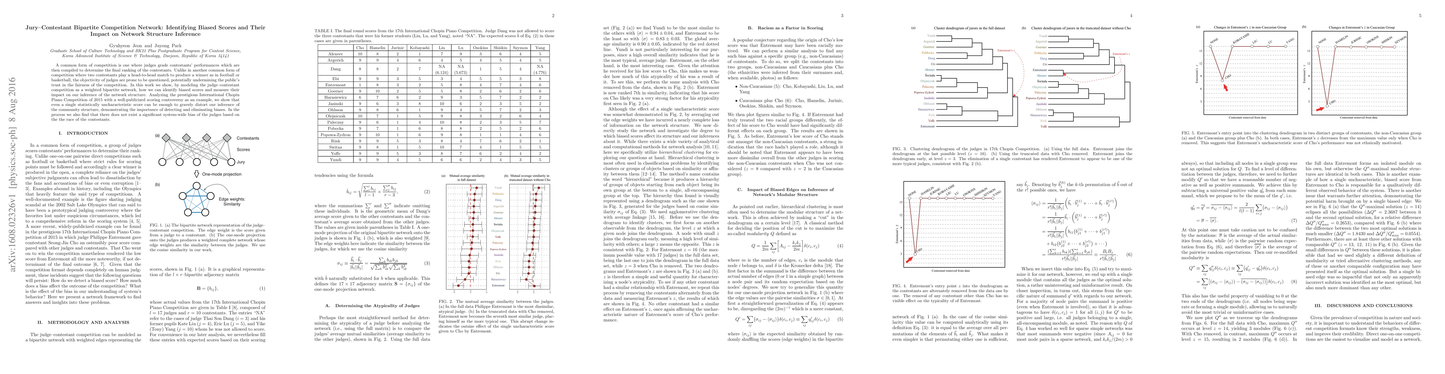 A common form of competition is one where judges grade contestants' performances which are then compiled to determine the final ranking of the contestants. Unlike in another common form of competition where two contestants play a head-to-head match to produce a winner as in football or basketball, the objectivity of judges are prone to be questioned, potentially undermining the public's trust in the fairness of the competition. In this work we show, by modeling the judge--contestant competition as a weighted bipartite network, how we can identify biased scores and measure their impact on our inference of the network structure. Analyzing the prestigious International Chopin Piano Competition of 2015 with a well-publicized scoring controversy as an example, we show that even a single statistically uncharacteristic score can be enough to gravely distort our inference of the community structure, demonstrating the importance of detecting and eliminating biases. In the process we also find that there does not exist a significant system-wide bias of the judges based on the the race of the contestants.