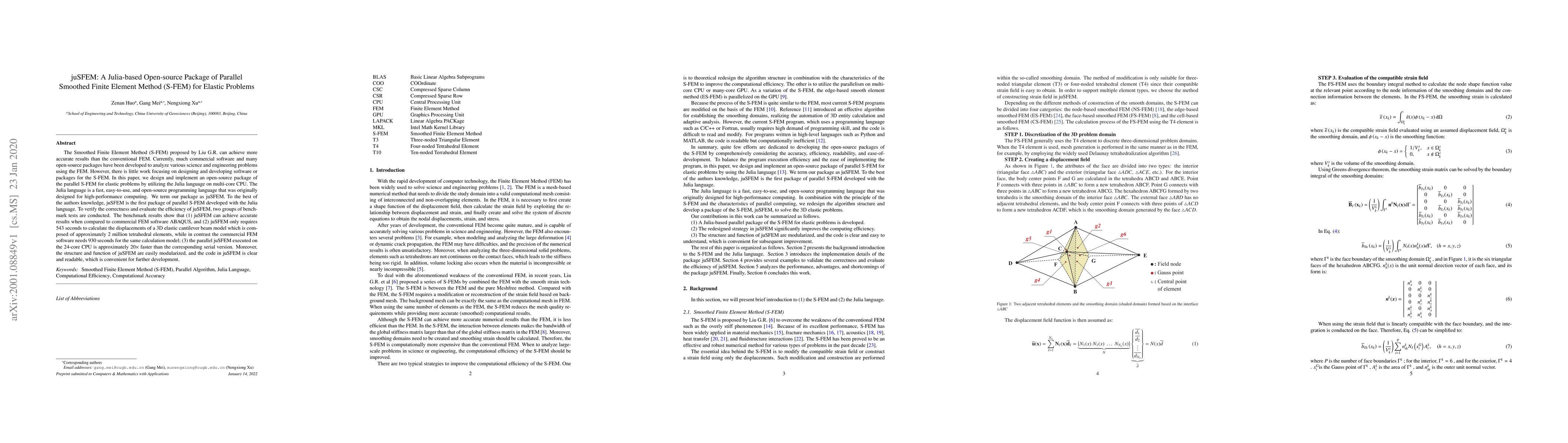 juSFEM is an open-source Julia-based package for parallel Smoothed Finite Element Method (S-FEM) applications in elastic problems, demonstrating superior accuracy and efficiency compared to conventional FEM software like ABAQUS. Benchmark tests show it is 20x faster on a 24-core CPU and achieves comparable accuracy.