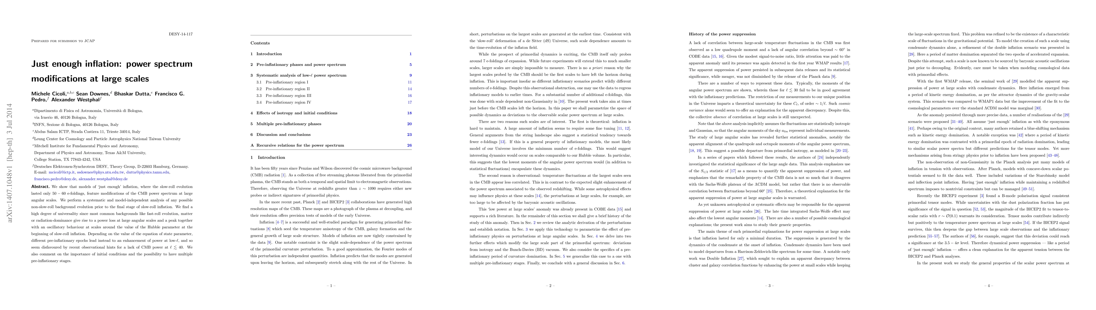 This paper investigates "just enough" inflation models with 50-60 e-foldings, revealing modifications in the CMB power spectrum at large scales, including a peak and oscillatory behavior. It suggests that such modifications are universal across various pre-inflationary backgrounds, though some scenarios are disfavored by recent CMB observations.
