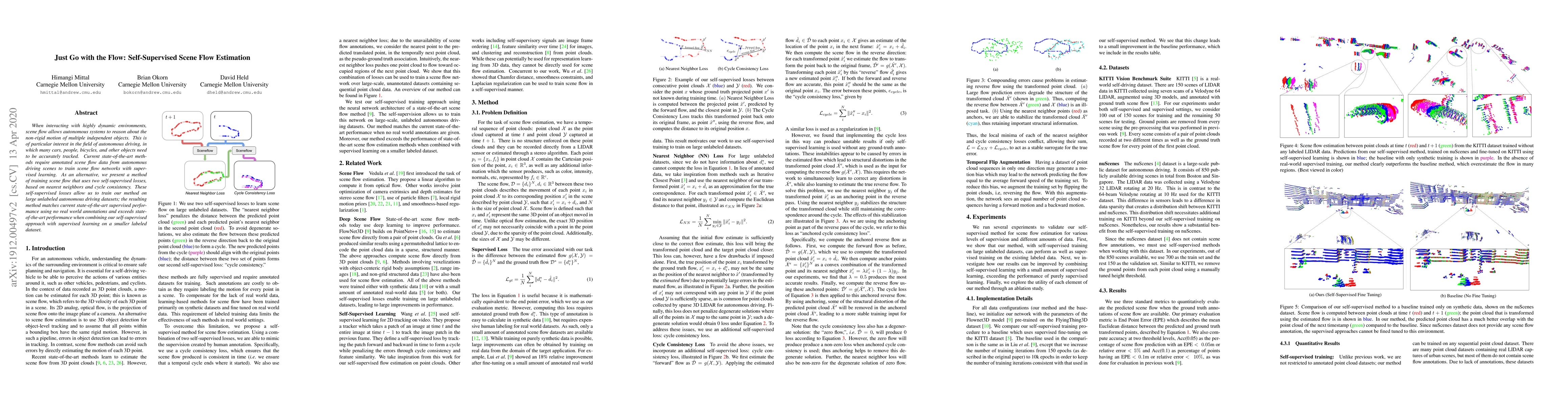 This paper proposes a self-supervised method for scene flow estimation in dynamic environments, particularly for autonomous driving, using nearest neighbor and cycle consistency losses. It achieves state-of-the-art performance without requiring labeled data, and further improves when combined with a small labeled dataset.