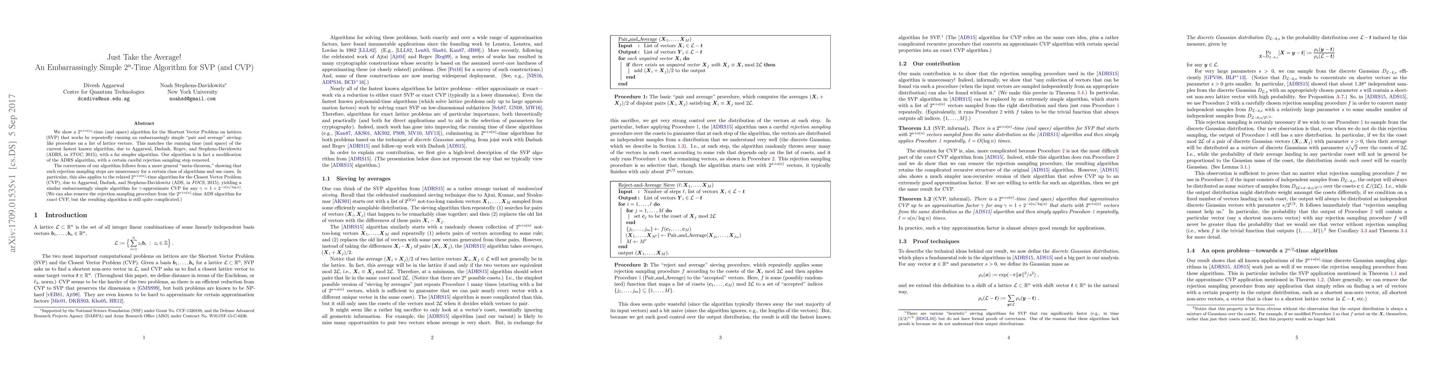 We show a $2^{n+o(n)}$-time (and space) algorithm for the Shortest Vector Problem on lattices (SVP) that works by repeatedly running an embarrassingly simple "pair and average" sieving-like procedure on a list of lattice vectors. This matches the running time (and space) of the current fastest known algorithm, due to Aggarwal, Dadush, Regev, and Stephens-Davidowitz (ADRS, in STOC, 2015), with a far simpler algorithm. Our algorithm is in fact a modification of the ADRS algorithm, with a certain careful rejection sampling step removed. The correctness of our algorithm follows from a more general "meta-theorem," showing that such rejection sampling steps are unnecessary for a certain class of algorithms and use cases. In particular, this also applies to the related $2^{n + o(n)}$-time algorithm for the Closest Vector Problem (CVP), due to Aggarwal, Dadush, and Stephens-Davidowitz (ADS, in FOCS, 2015), yielding a similar embarrassingly simple algorithm for $\gamma$-approximate CVP for any $\gamma = 1+2^{-o(n/\log n)}$. (We can also remove the rejection sampling procedure from the $2^{n+o(n)}$-time ADS algorithm for exact CVP, but the resulting algorithm is still quite complicated.)