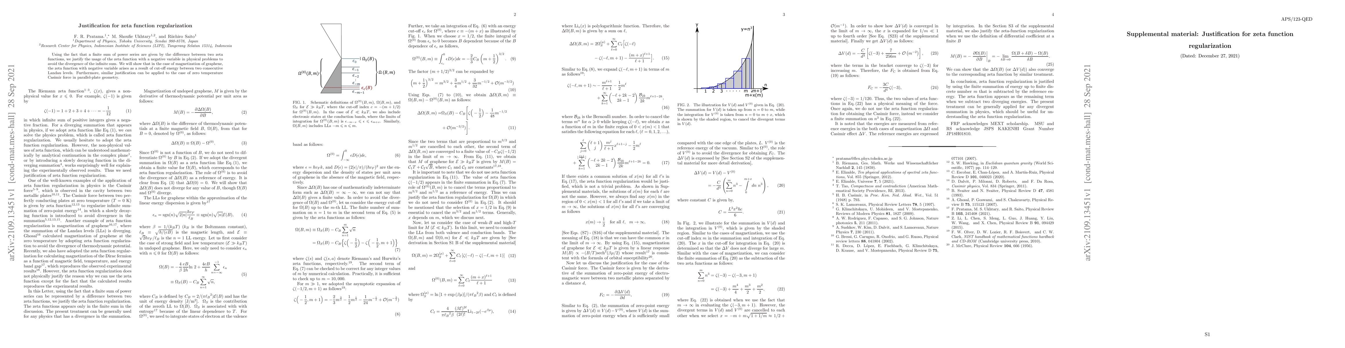 Researchers justify using a zeta function with a negative variable to avoid divergence in infinite sums, demonstrating its applicability to graphene magnetization and zero-temperature Casimir force cases.
