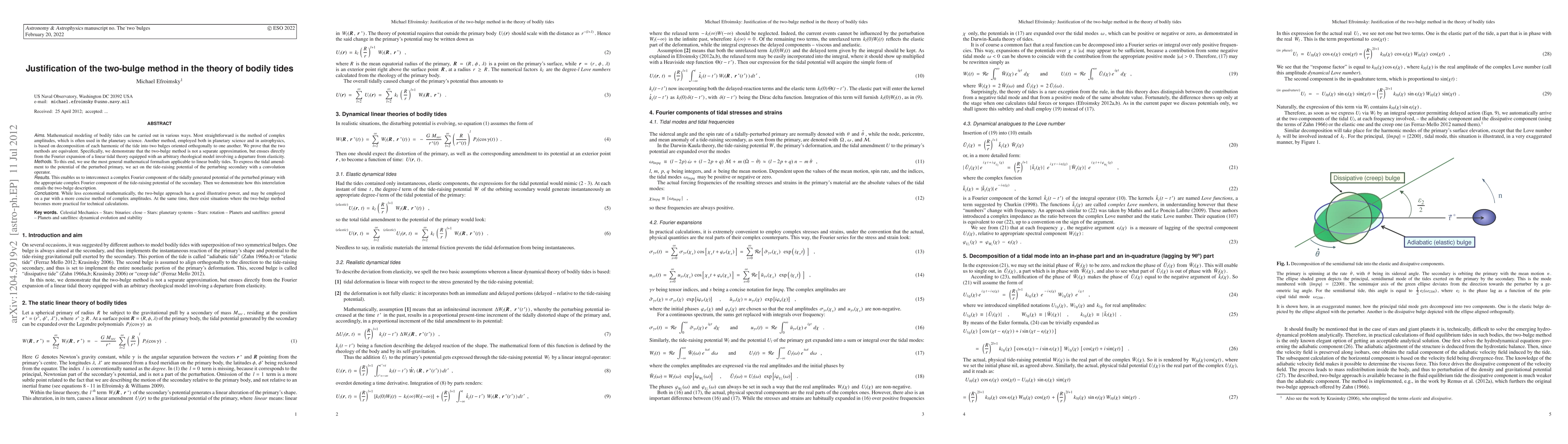 Mathematical modeling of bodily tides can be carried out in various ways. Most straightforward is the method of complex amplitudes, which is often used in the planetary science. Another method, employed both in planetary science and astrophysics, is based on decomposition of each harmonic of the tide into two bulges oriented orthogonally to one another. We prove that the two methods are equivalent. Specifically, we demonstrate that the two-bulge method is not a separate approximation, but ensues directly from the Fourier expansion of a linear tidal theory equipped with an arbitrary rheological model involving a departure from elasticity. To this end, we use the most general mathematical formalism applicable to linear bodily tides. To express the tidal amendment to the potential of the perturbed primary, we act on the tide-raising potential of the perturbing secondary with a convolution operator. This enables us to interconnect a complex Fourier component of the tidally generated potential of the perturbed primary with the appropriate complex Fourier component of the tide-raising potential of the secondary. Then we demonstrate how this interrelation entails the two-bulge description. While less economical mathematically, the two-bulge approach has a good illustrative power, and may be employed on a par with a more concise method of complex amplitudes. At the same time, there exist situations where the two-bulge method becomes more practical for technical calculations.