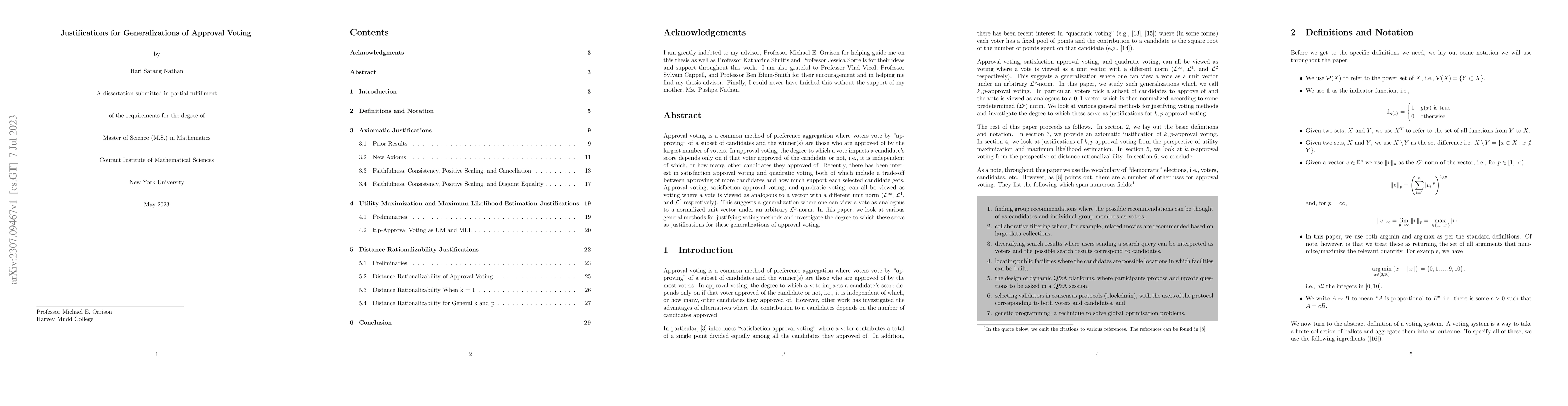 Approval voting is a common method of preference aggregation where voters vote by ``approving'' of a subset of candidates and the winner(s) are those who are approved of by the largest number of voters. In approval voting, the degree to which a vote impacts a candidate's score depends only on if that voter approved of the candidate or not, i.e., it is independent of which, or how many, other candidates they approved of. Recently, there has been interest in satisfaction approval voting and quadratic voting both of which include a trade-off between approving of more candidates and how much support each selected candidate gets. Approval voting, satisfaction approval voting, and quadratic voting, can all be viewed as voting where a vote is viewed as analogous to a vector with a different unit norm ($\mathcal{L}^{\infty}$, $\mathcal{L}^{1}$, and $\mathcal{L}^2$ respectively). This suggests a generalization where one can view a vote as analogous to a normalized unit vector under an arbitrary $\mathcal{L}^p$-norm. In this paper, we look at various general methods for justifying voting methods and investigate the degree to which these serve as justifications for these generalizations of approval voting.